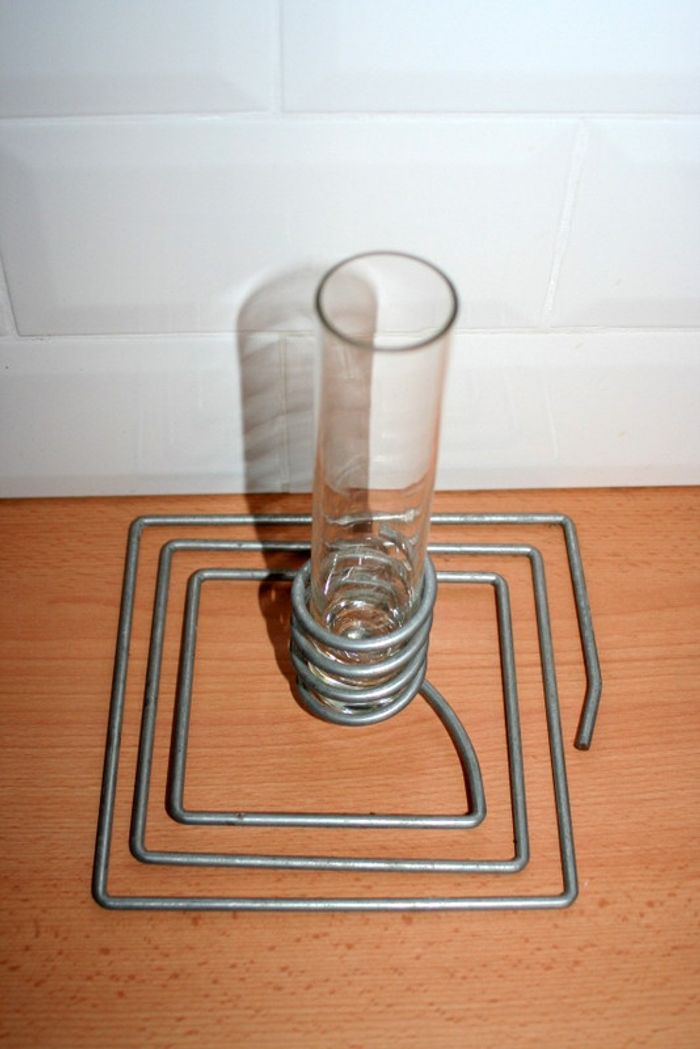 Photophore sur socle en fer, vase 20cm de haut et 3.8cm de diamètre, support en fer 17.7cm, 550g