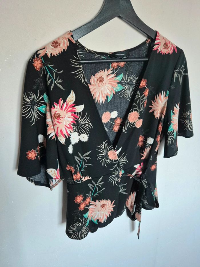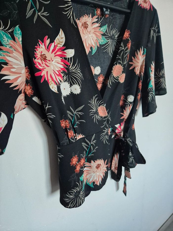 📌 Lot 20% de remise pour l'achat de 5 articles, suite ... Cache cœur noir avec des fleurs manche courte, très sympa, ➡️Largeur à plat sous les bras  49 cm ➡️Longueur 57 cm ➡️viscose ou polyester ⭐ Excellent état ✈Envoi rapide des colis 💗 Abonnez vous à mon profil, nombreux articles ajoutés régulièrement ! 🌸 Tapez Laetitresors pour voir mes annonces #laetitresors_blouse40 #blouse #noir #rose #fleur #fleurie #manche #courte #lien #nouer #atmosphère #laetitresors