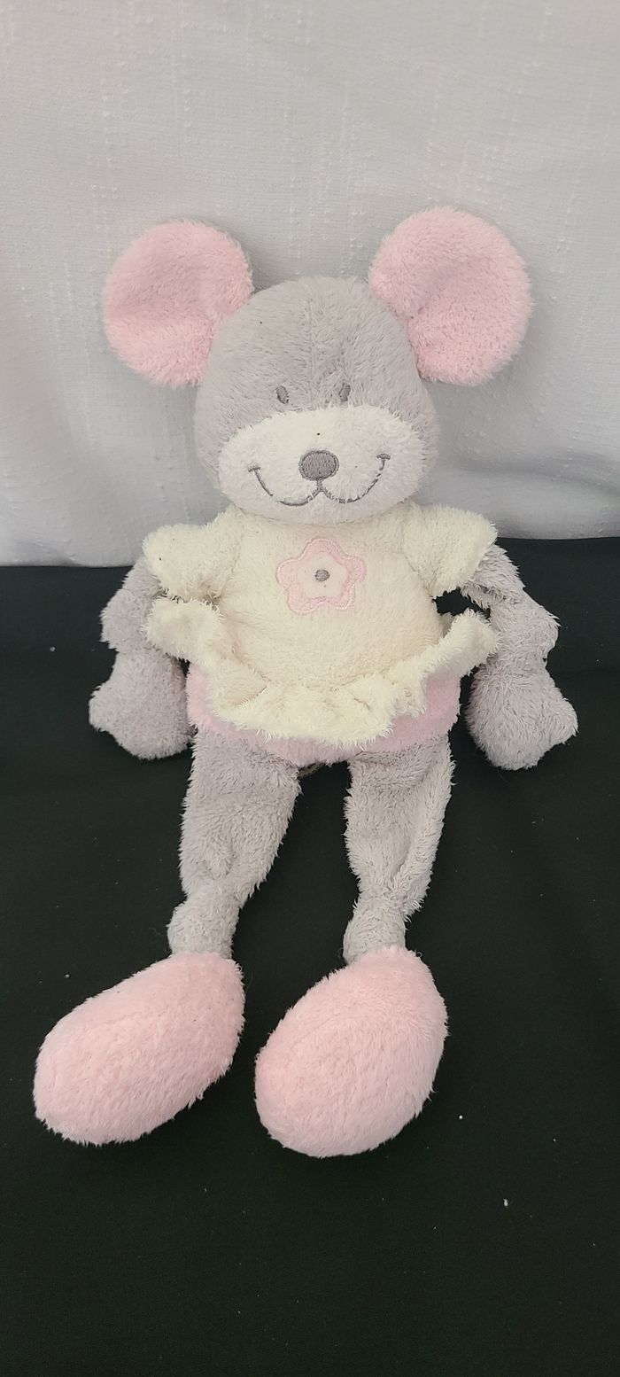 Doudou souris gris blanc fleur rose NICOTOY 3