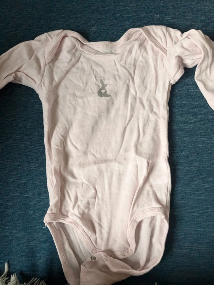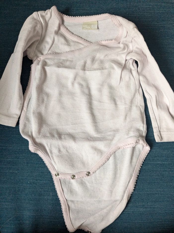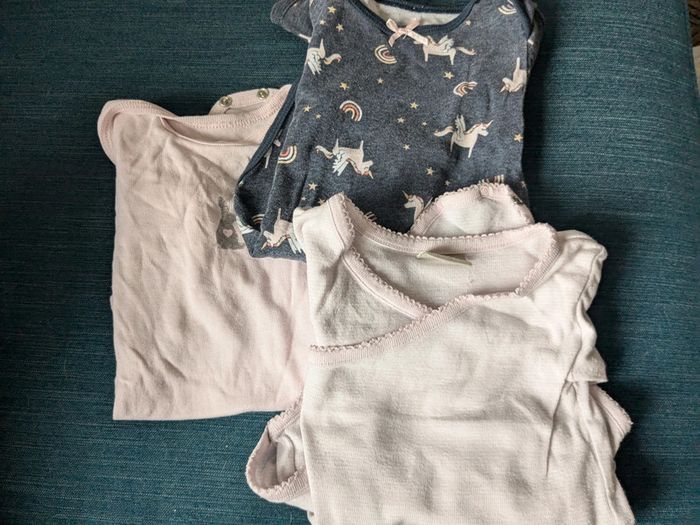 Lot de 3 bodies 12 mois Les deux roses sont en très bon état, le bleu a déjà été beaucoup porté mais il n'a pas de trous ou de tâches. #miladylinefille12mois