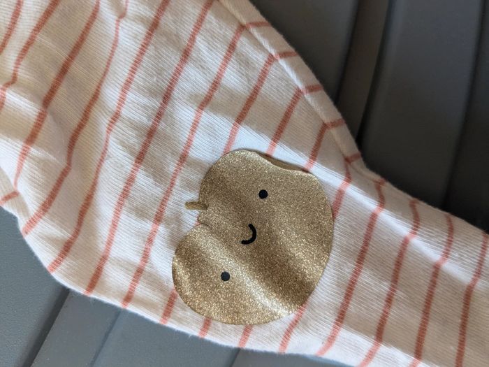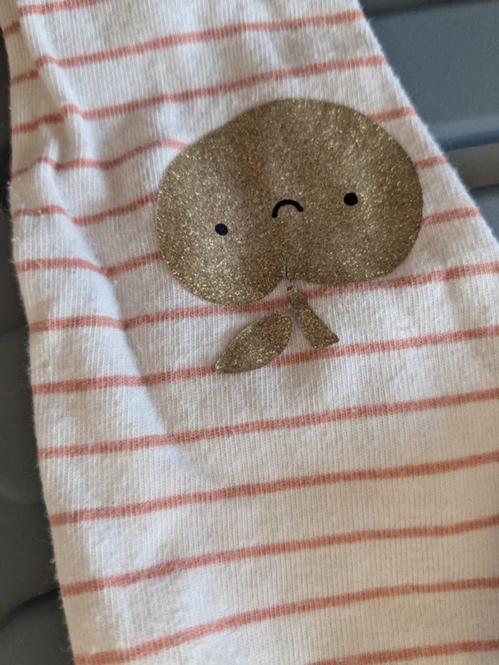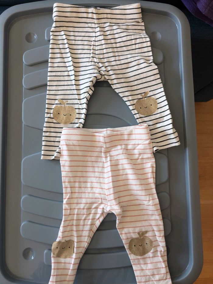 Lot 2 leggings rayés Kiabi Le rayé rose à une pomme sur les genoux qui manque un petit bout du dessin #miladylinefille6mois