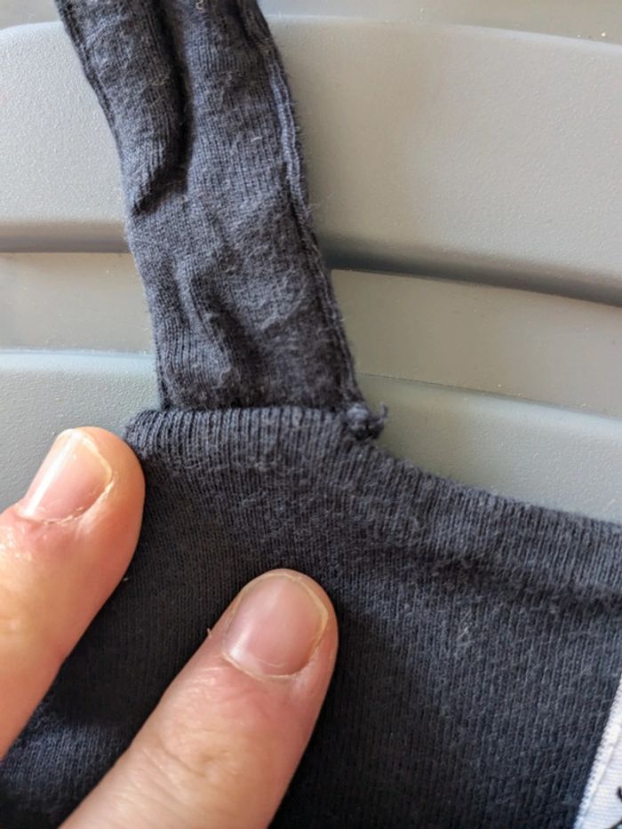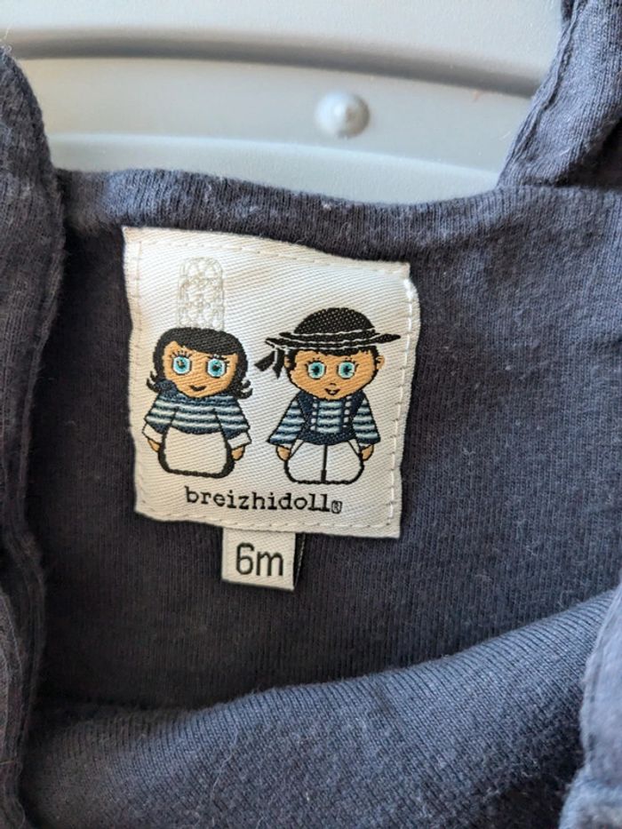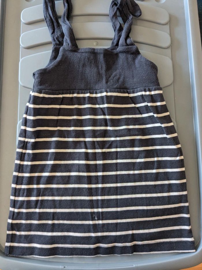 Robe avec bretelles à nouer Léger défaut au niveau d'une bretelle à l'avant et l'arrière mais la bretelle tient très bien et ça ne se voit pas porté une fois le noeud fait. #miladylinefille6mois