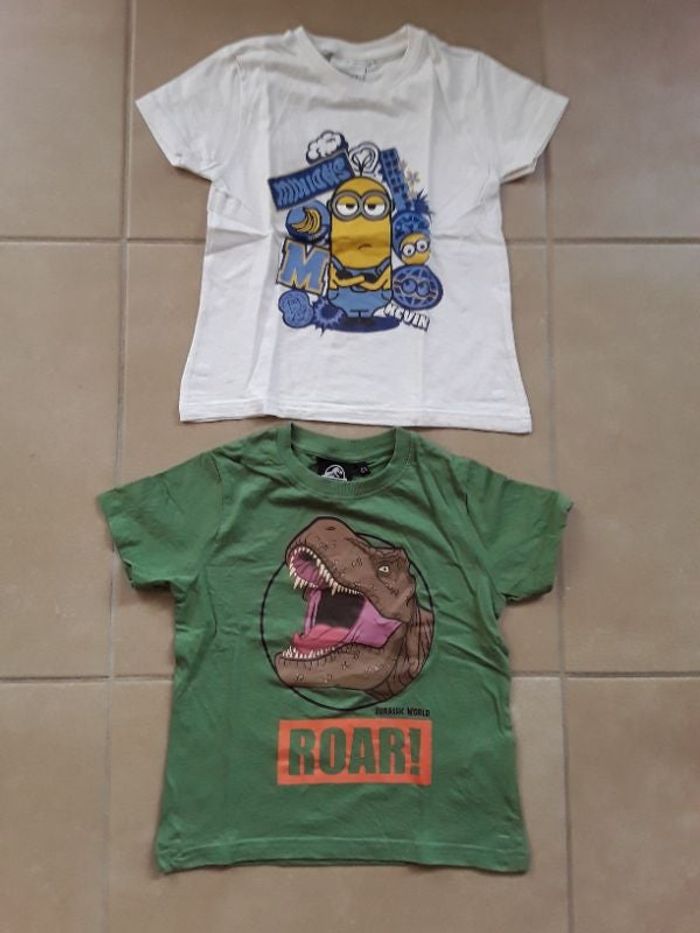 1 blanc LES MINIONS. 1 vert JURASSIC WORLD. Taille 6 ans.