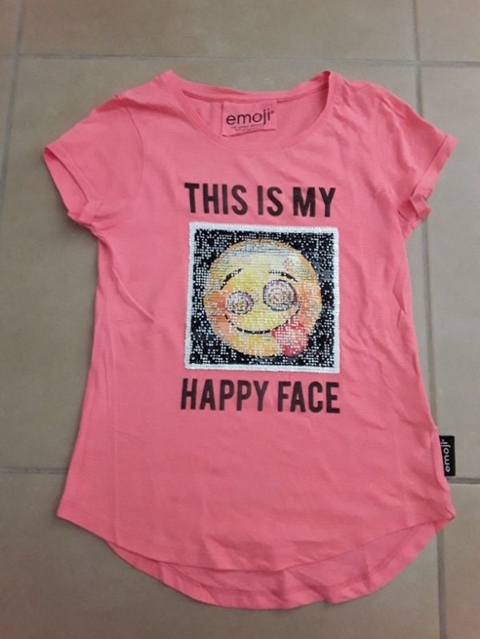T-shirt MC rose fluo EMOJI fille 10 ans TBE