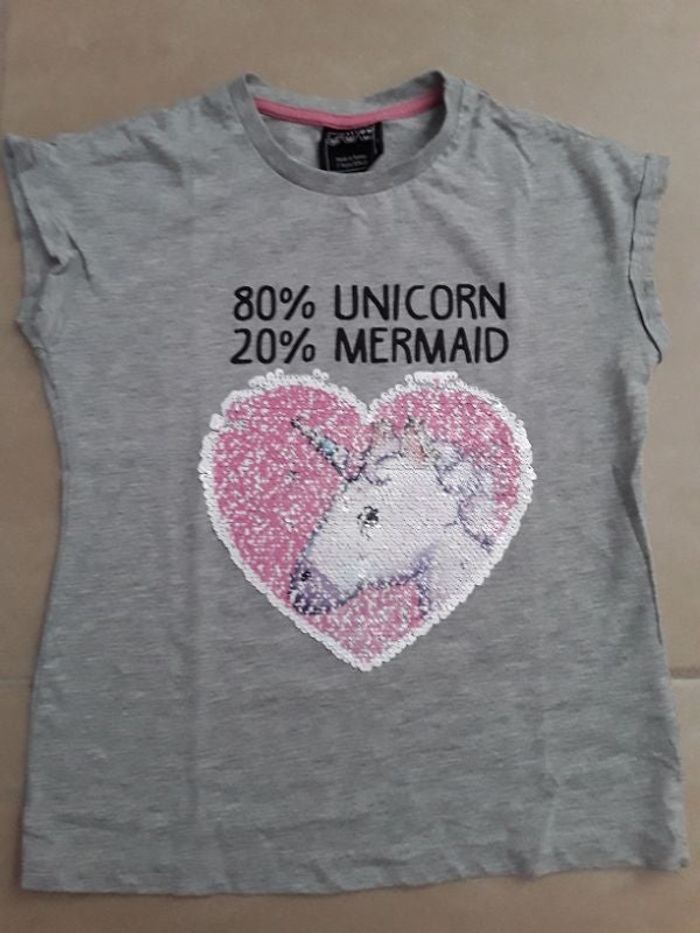 T-shirt MC gris sequins réversibles fille 7-8 ans TBE