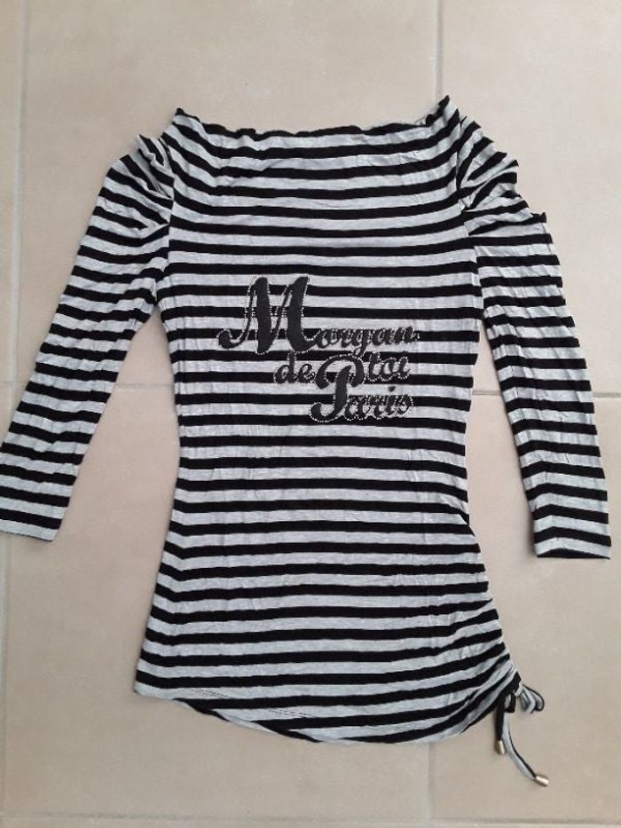 Tunique rayée gris noir femme XS MORGAN TBE
