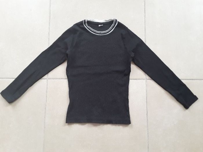 T-shirt côtelé ML noir fille 134-140cm TBE