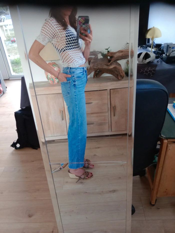Jean femme 34 taille haute jambes larges c85 - photo numéro 19