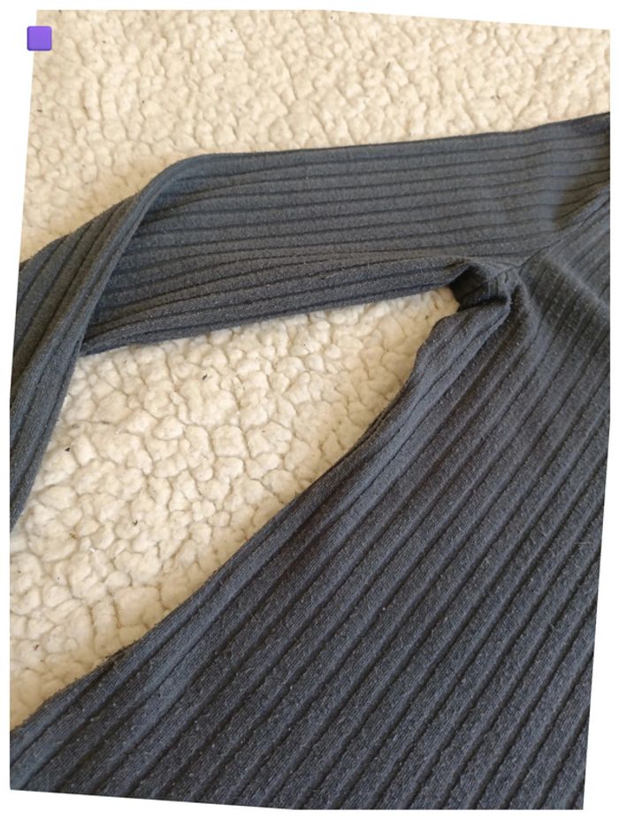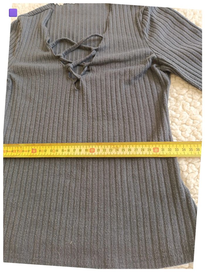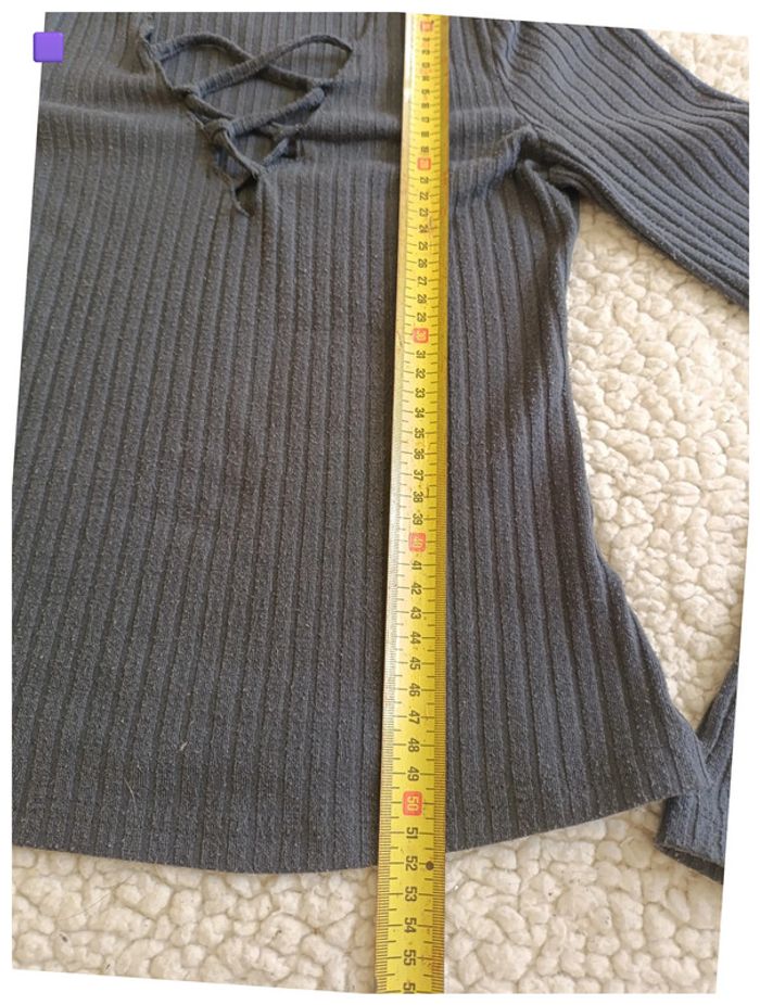 Haut gris côtelé à lacets devant – basique, y2k, manches longues - photo numéro 5
