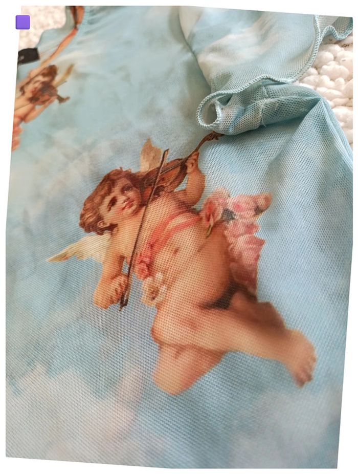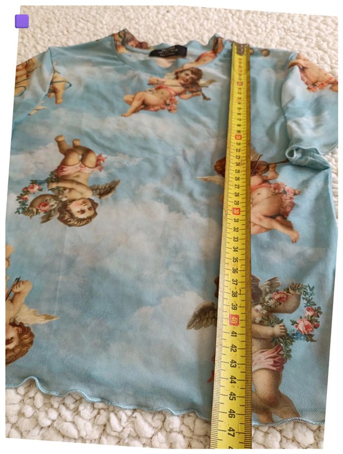 T-shirt bleu ciel à imprimé anges – Taille S - photo numéro 4