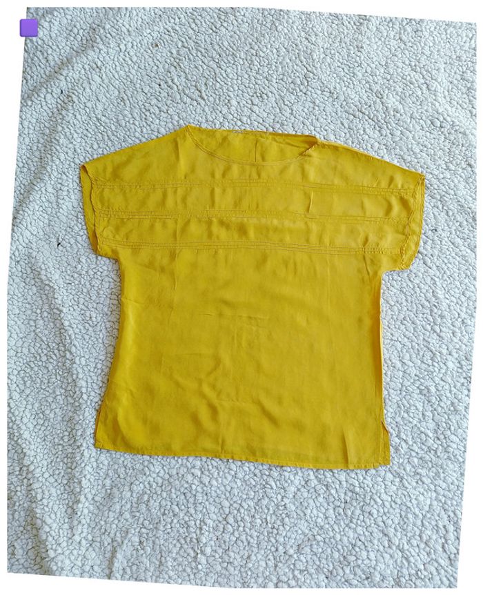 Top soie ?moutarde à manches courtes style casual - photo numéro 1