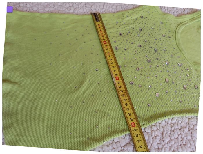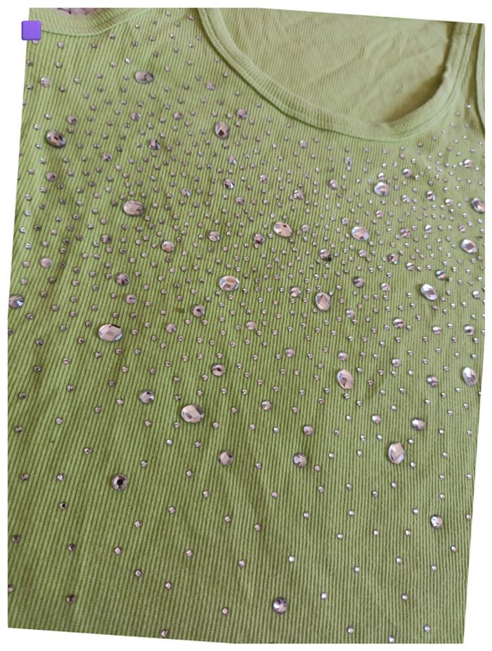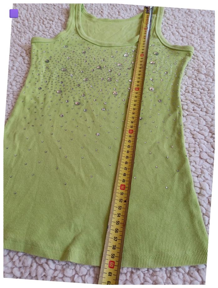 Débardeur vert fluo à strass paillettes brillant vintage old school – Taille S - photo numéro 3