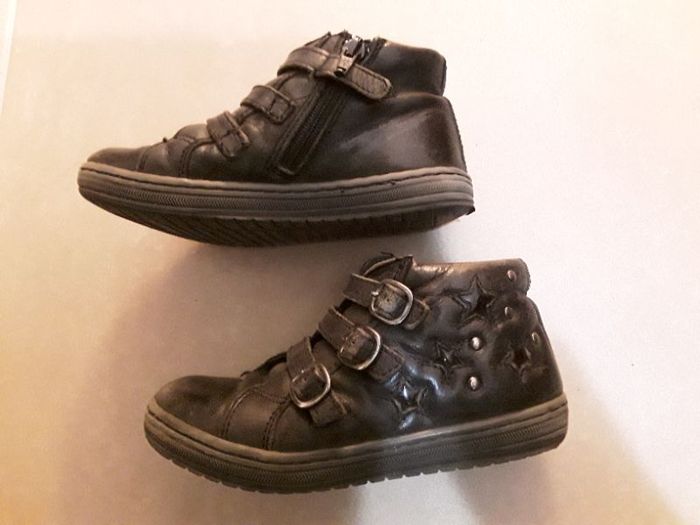 En cuir. Avec zip intérieur du pied et 3 boucles déco. Étoiles brodées et clous argentés. Marque DOLCE. En très bon état.