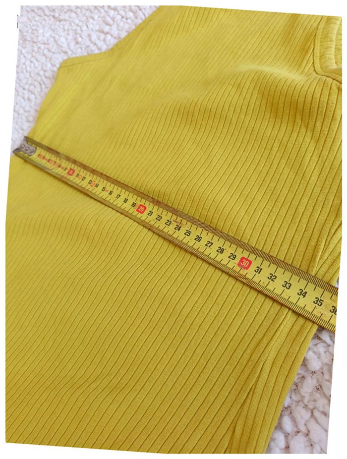 (i) Débardeur côtelé jaune/vert vif H&M - taille M Taille M. Débardeur sans manches à col montant, coupe près du corps, tissu côtelé extensible. #vintage #jaune #côtelé #hm #basique