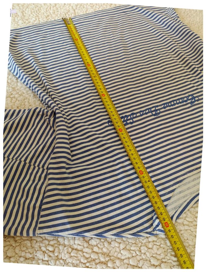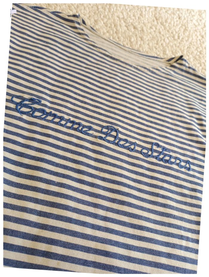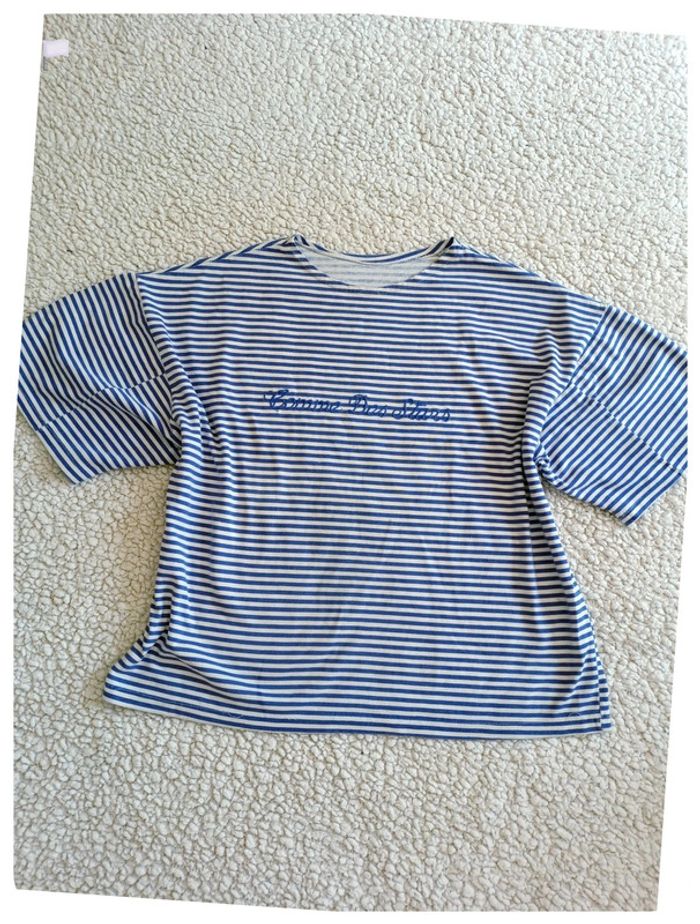 (i) T-shirt marinière Comme Des Stars bleu et blanc vintage old school Taille non indiquée, peut convenir à du M ou L. Coupe oversize, rayures fines et broderie "Comme Des Stars" au centre. #vintage #bleu #blanc #marinière #oversize #rayures