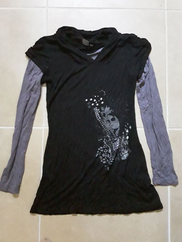 Tunique effet 2 en 1 gris noir fille 12 ans en BE