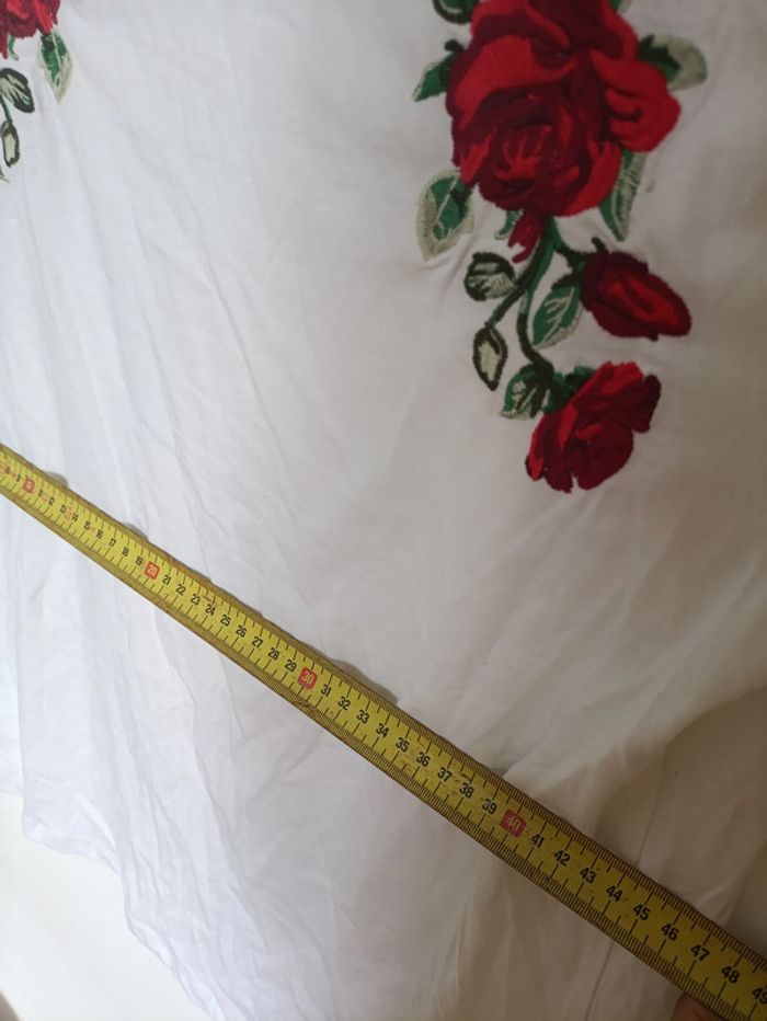 T-shirt blanc brodé roses rouges vintage - photo numéro 6