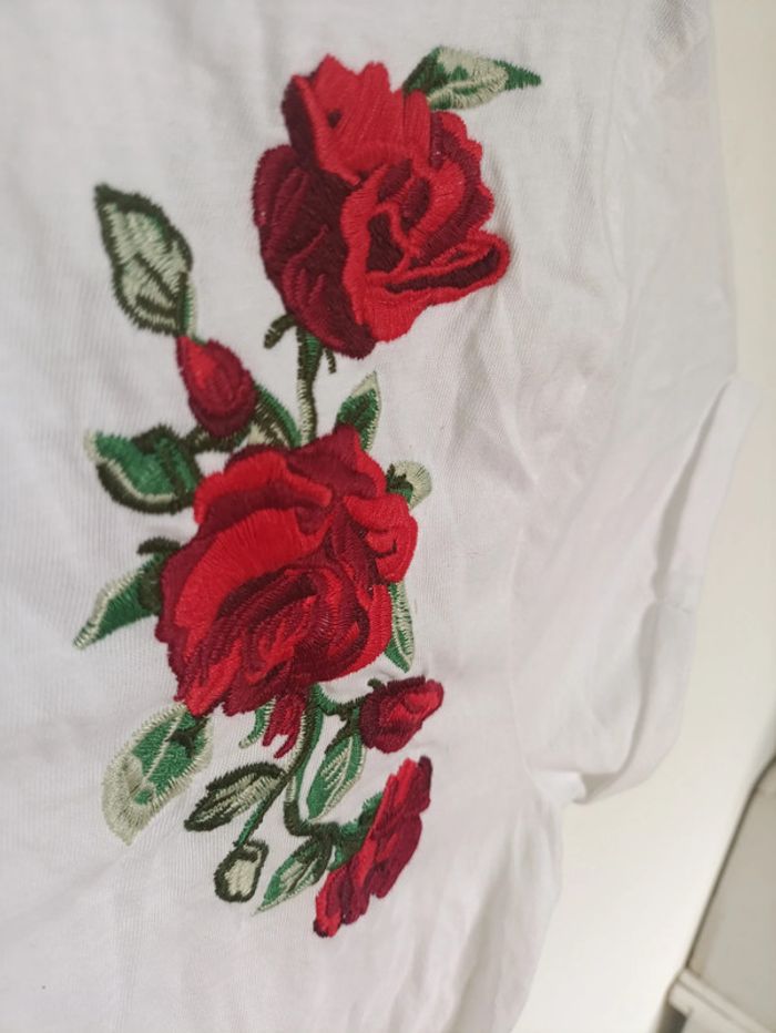 T-shirt blanc brodé roses rouges vintage - photo numéro 4