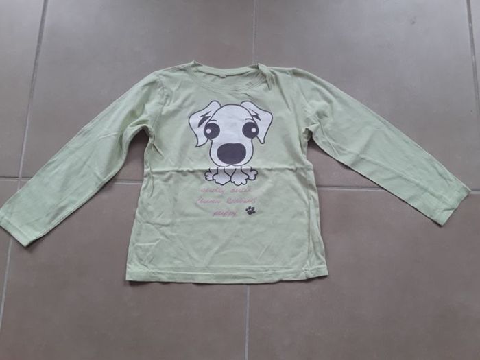 T-shirt jaune chien ML fille 7-8 ans TBE