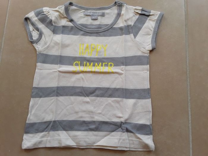 T-shirt MC rayé beige/gris fille 3SUISSES en 3 ans TBE