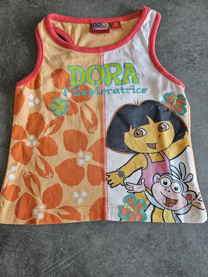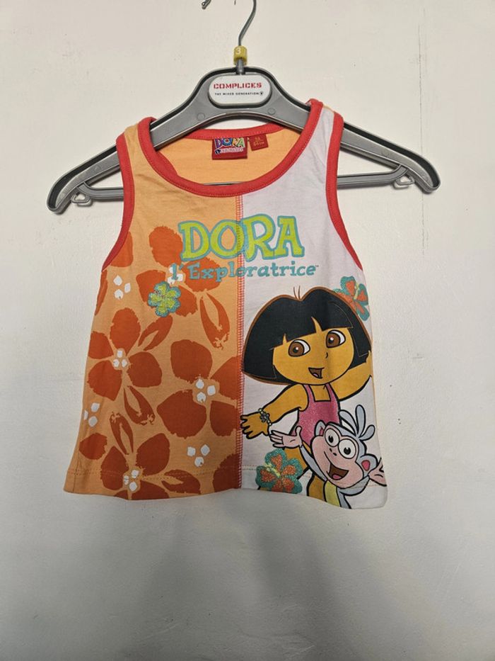 Débardeur bébé fille - Taille 3 ans (94cm) - Dora l'Exploratrice - Blanc orange imprimé Dora - photo numéro 1