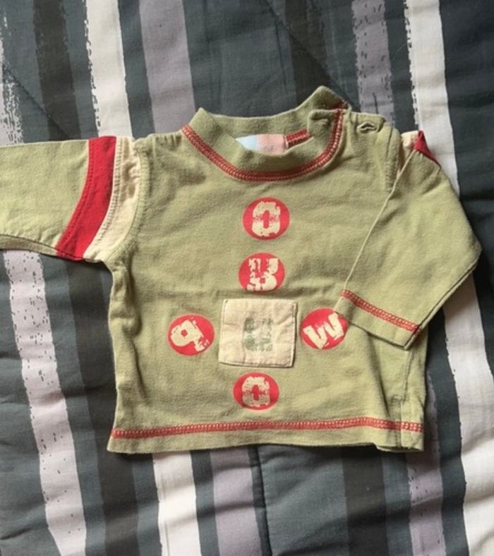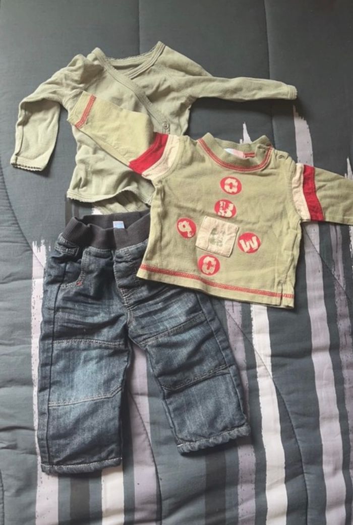 Ensemble pantalon marque obaibi, bodi petit bateau et t-shirt manche longue sans marque Taille 3 mois