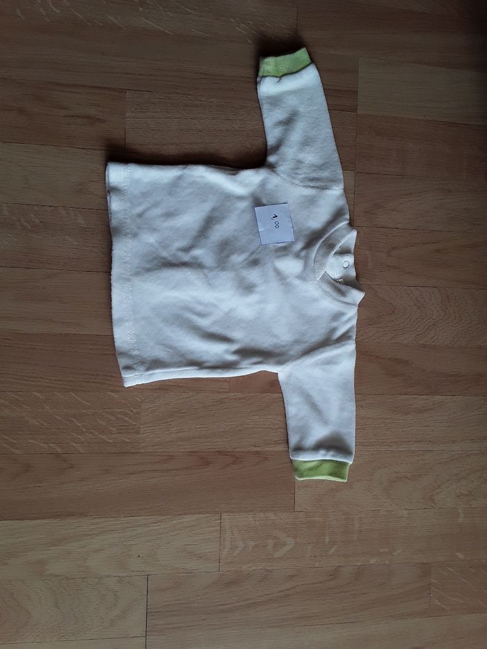 Pull manche longue, blanc et vert anis , fermeture 4 pressions dos