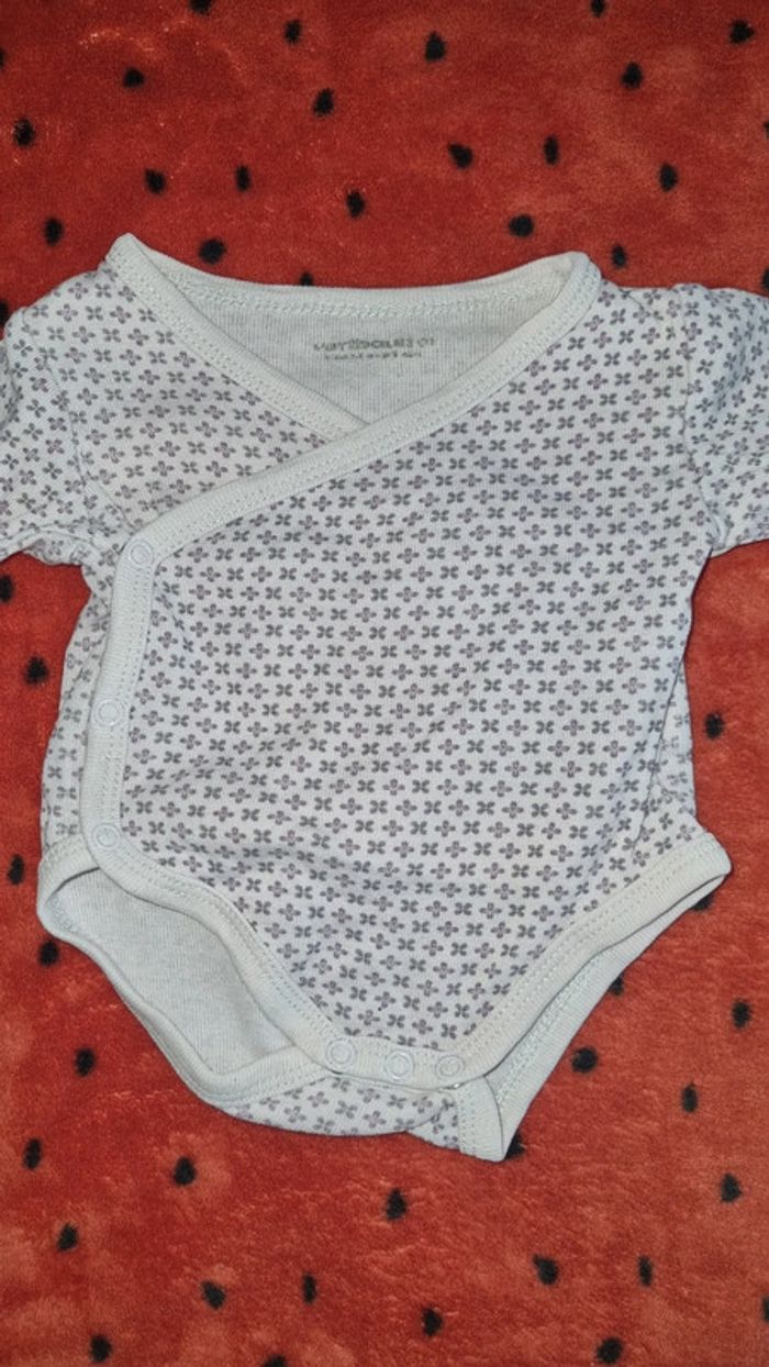 Vend body manche longue 1 mois fille en bon état Taille effacer mais correspond à du 1 mois