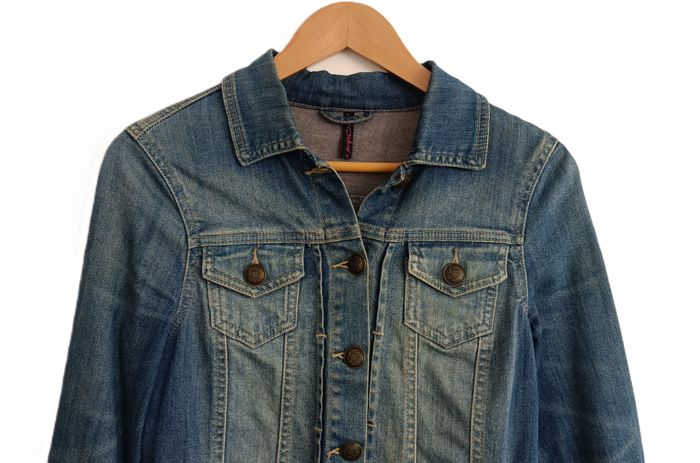 Veste en jean bleu effet délavé. FPC. Coton. Elasthanne. Taille S - photo numéro 3