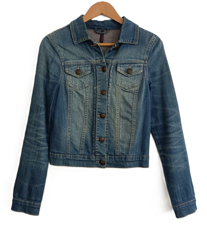 Veste en jean bleu effet délavé. FPC. Coton. Elasthanne. Taille S - photo numéro 1