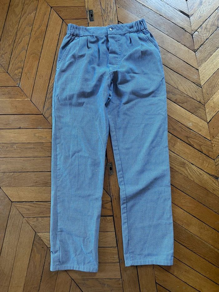 Pantalon de cuisine Vintage Large Straight blanc et bleu - photo numéro 1