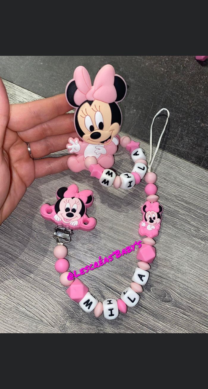 Attache tétine Anneau de dentition Minnie Plusieurs modèles minnie au choix Couleurs de perles aux choix également