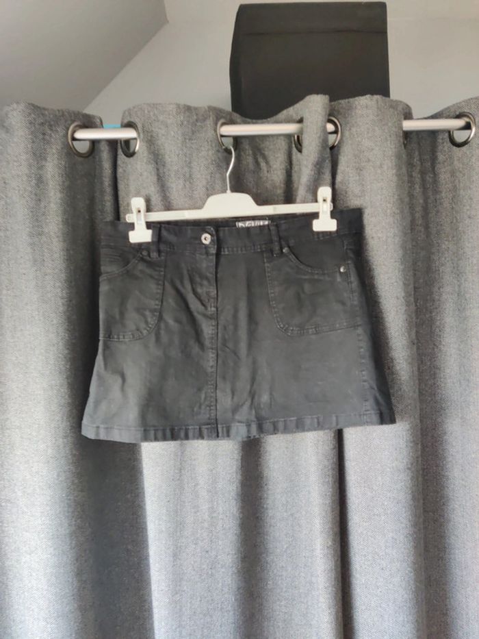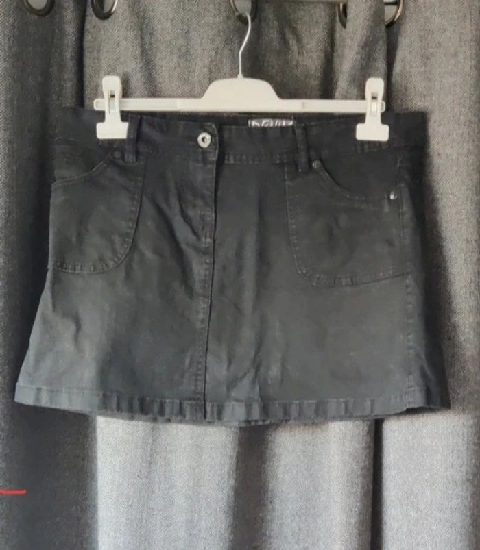 Jupe noir en jeans avec de l élastique dans le tissu - photo numéro 1