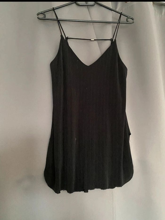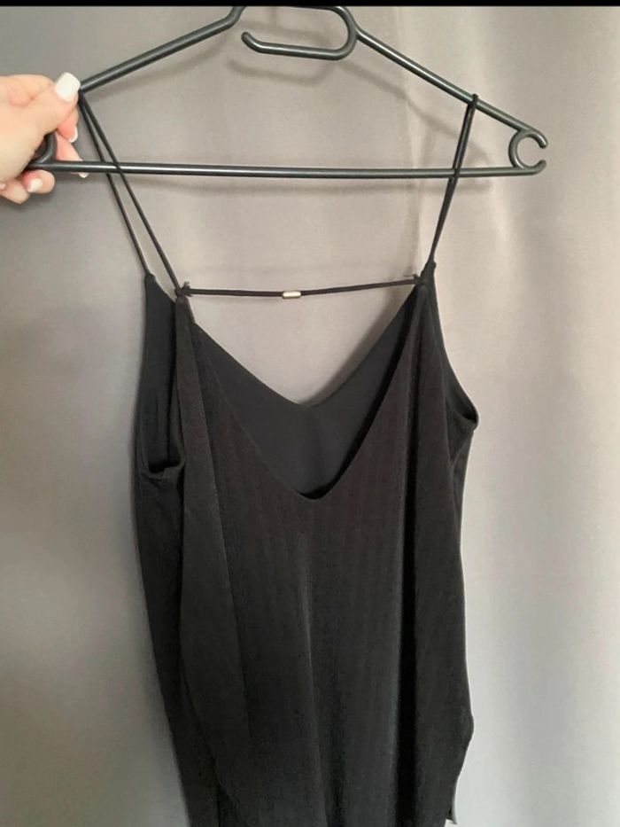 Top débardeur à fine bretelles Blouse fluide noire - décolleté dans le dos Taille M Marque Zara Effet satiné Très bon état mais ⚠️ petites tâches sur le devant 8€