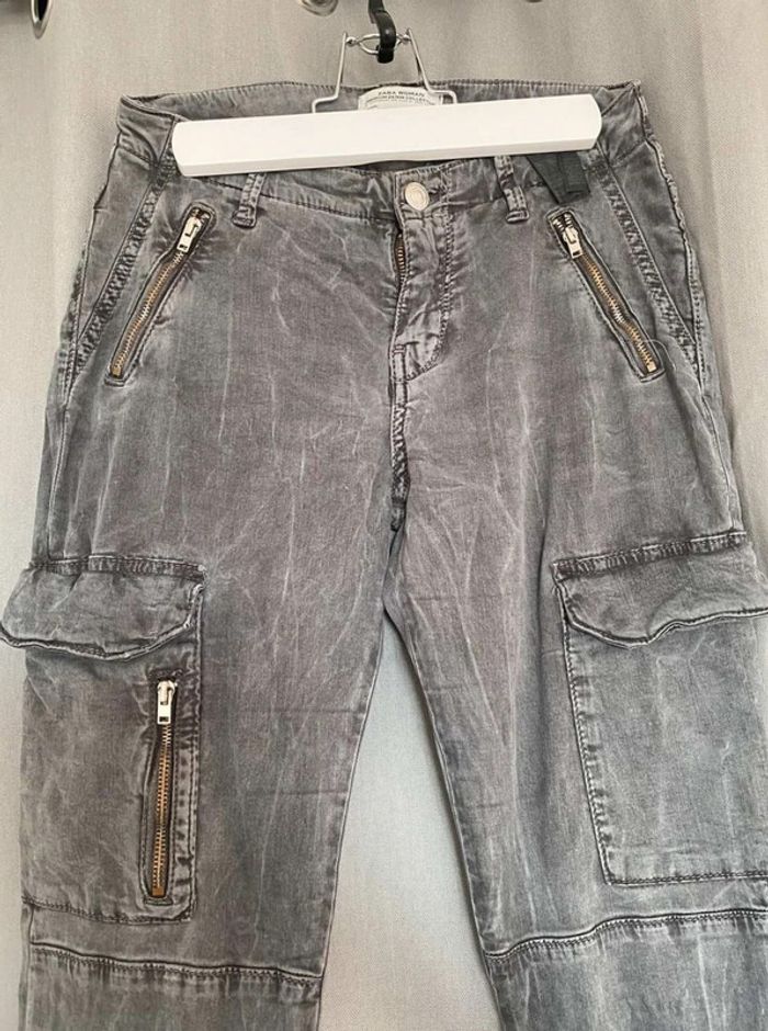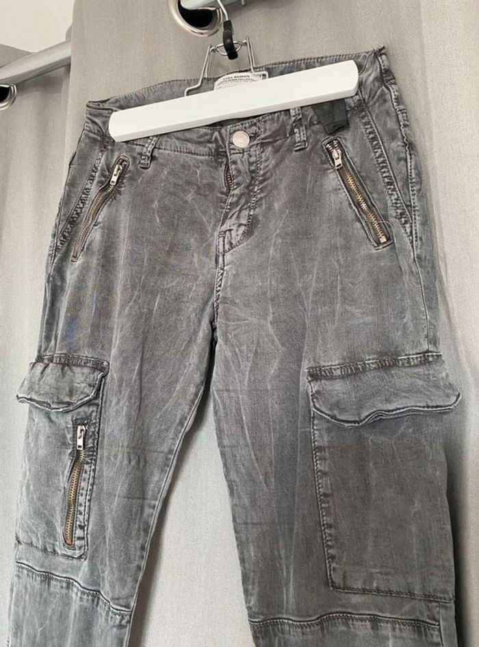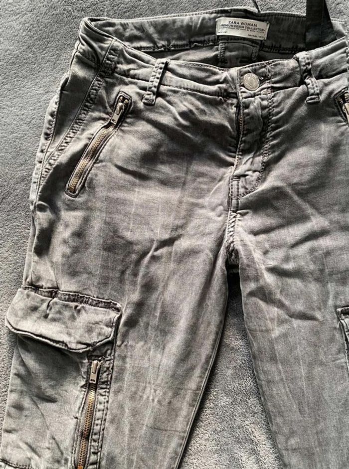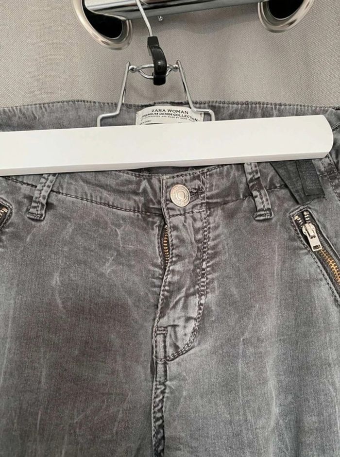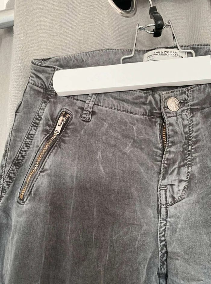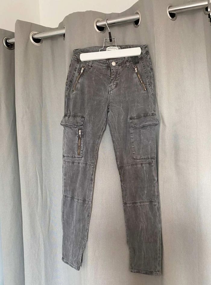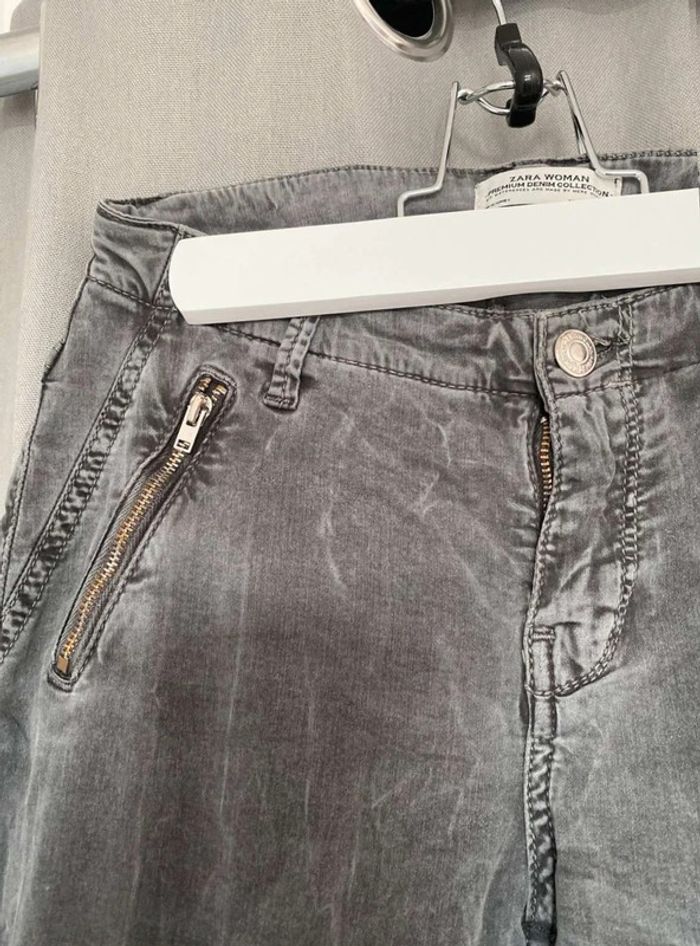 Pantalon Pantalon Zara, plutôt slim et près du corps Zara Woman, premium denim collection Gris foncé, effet velours/daim au toucher (tout doux), avec des poches ⚠️ un bouton manquant pour fermer une poche (voir Photos) Très bon état Taille 34 17€