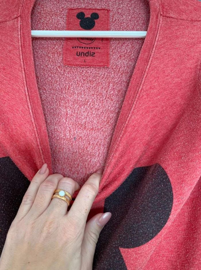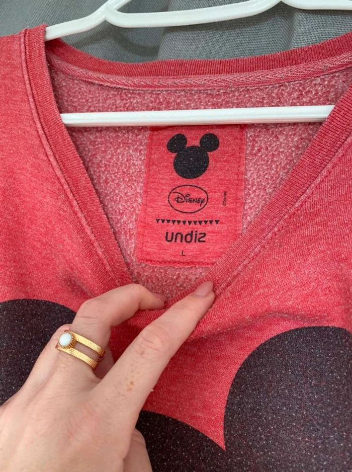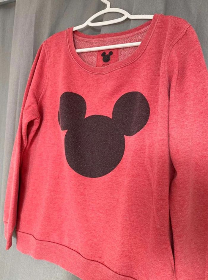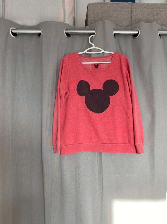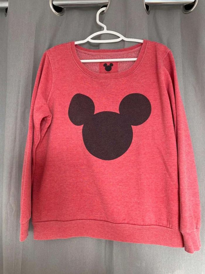 Haut de pyjama Sweat de pyjama Mickey mouse Dessin de Mickey noir sur le devant Bon état/ satisfaisant (+satisfaisant car porté beaucoup de fois donc ⚠️ le sweat peluche beaucoup) + taches noir sur la manche gauche (voir photos) Taille L Marque Undiz 5€