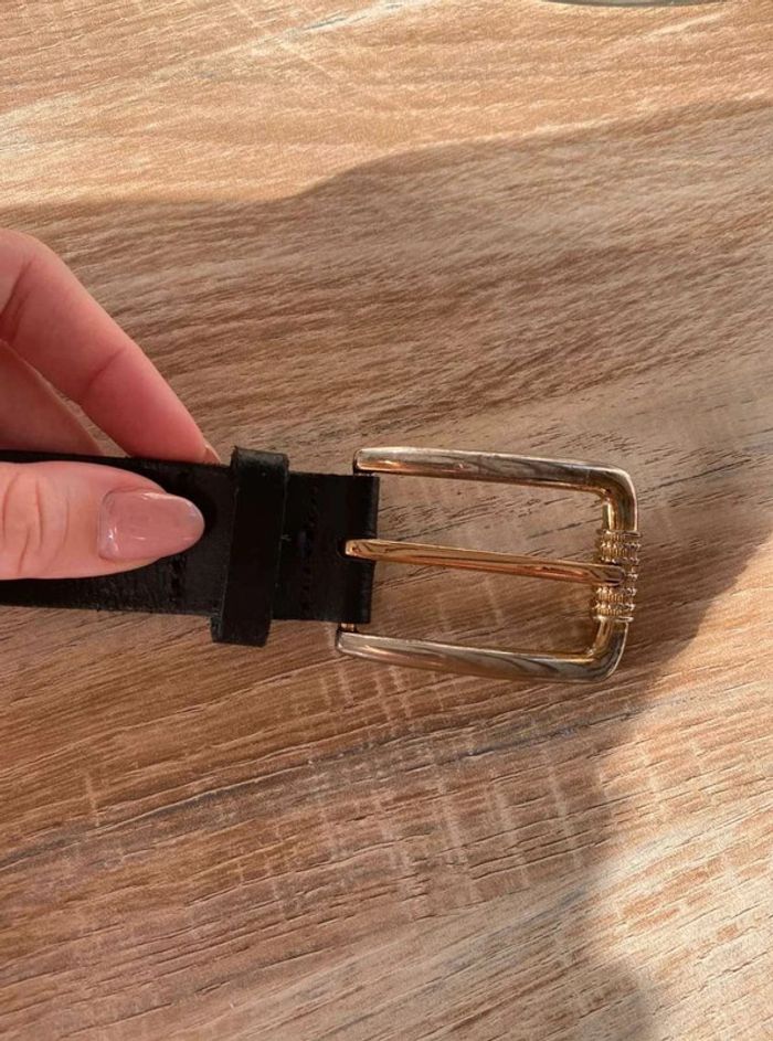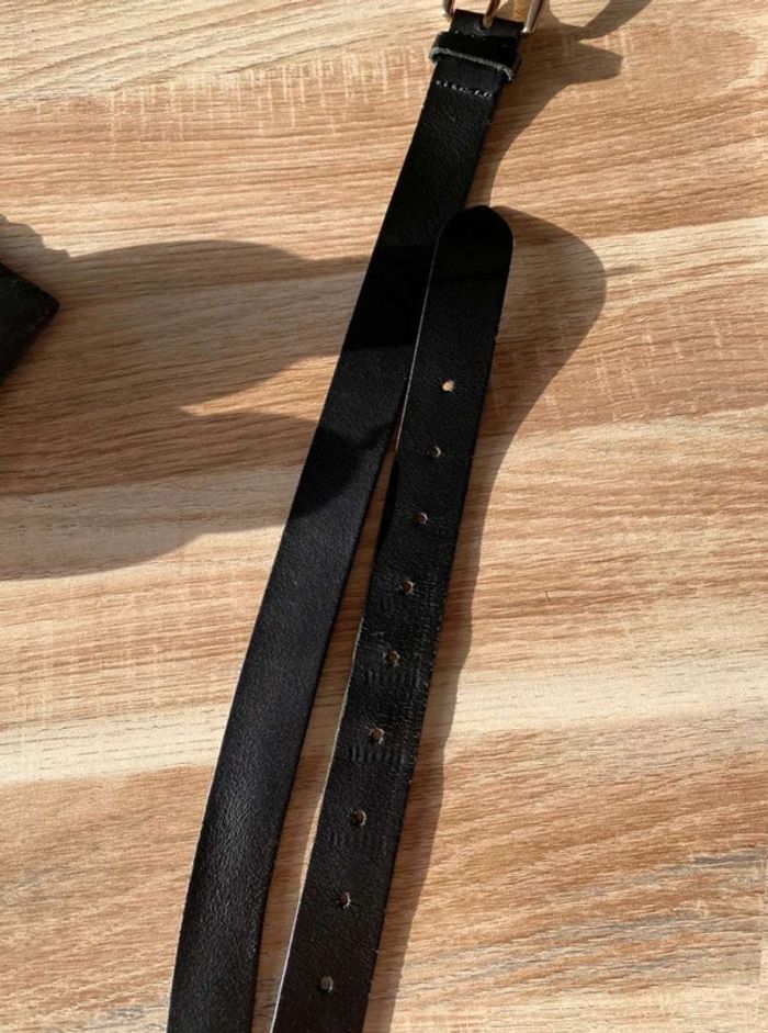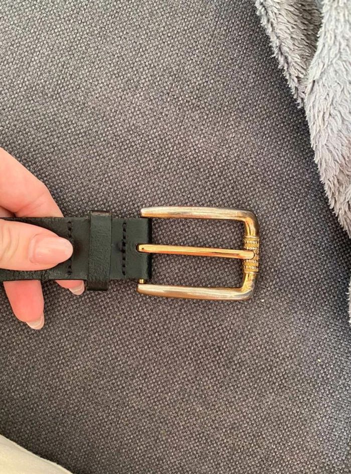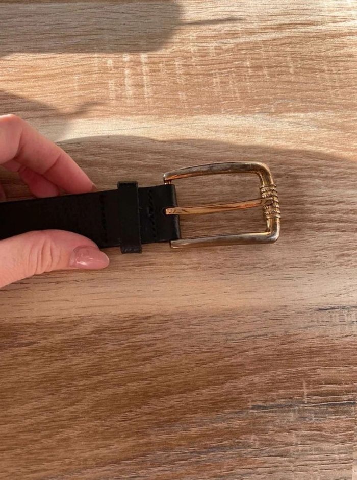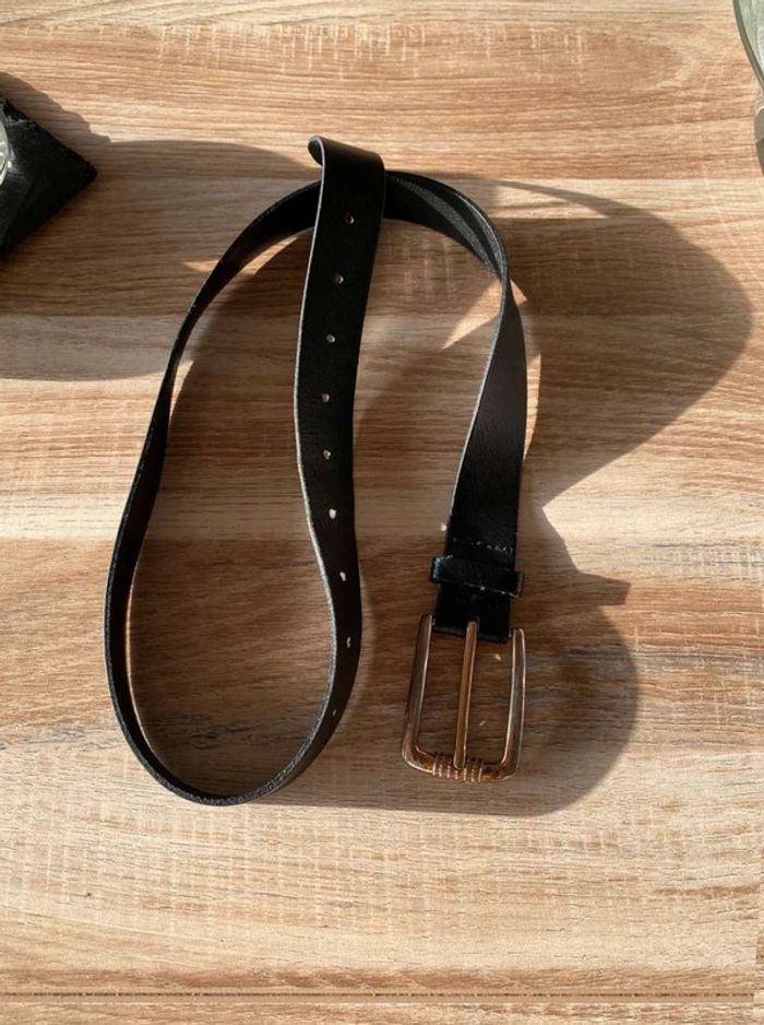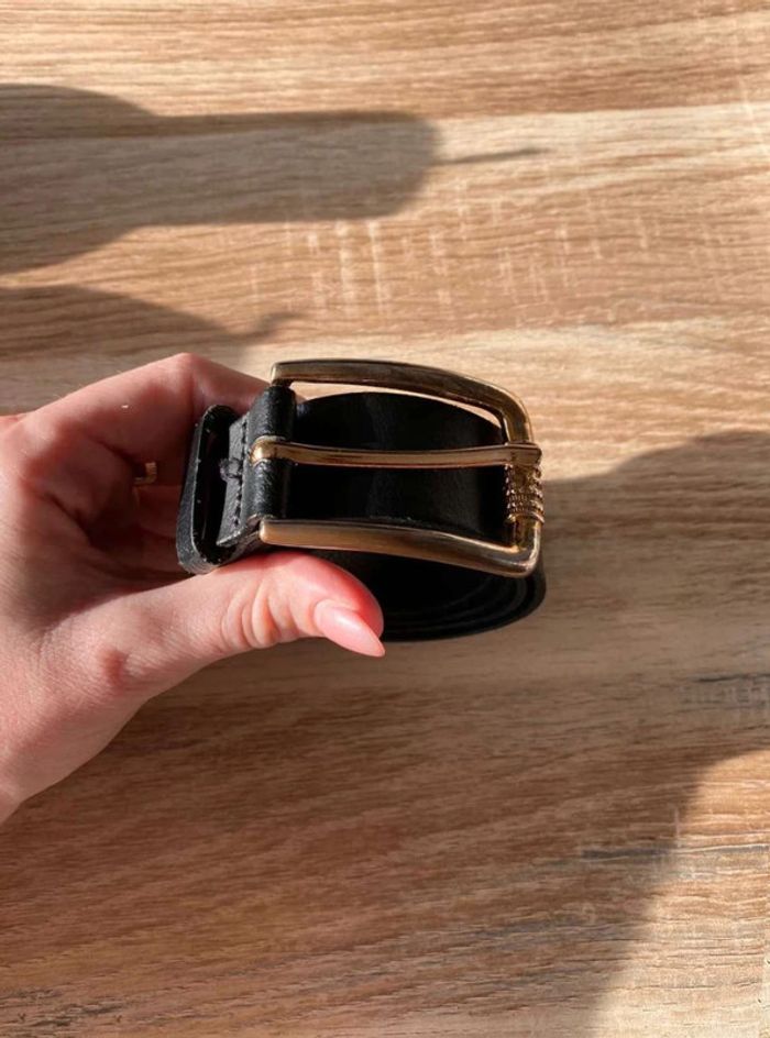 Ceinture Ceinture noir en cuir avec boucle carré doré Bon état (le cuir est en bon état) mais la couleur de la boucle part… ⚠️ voir photos Taille XS/S Marque ASOS & acheté 20€ sur asos 10€