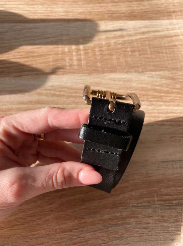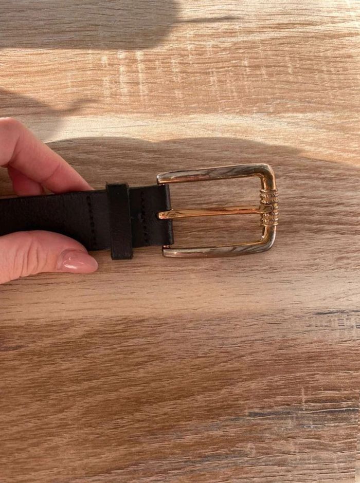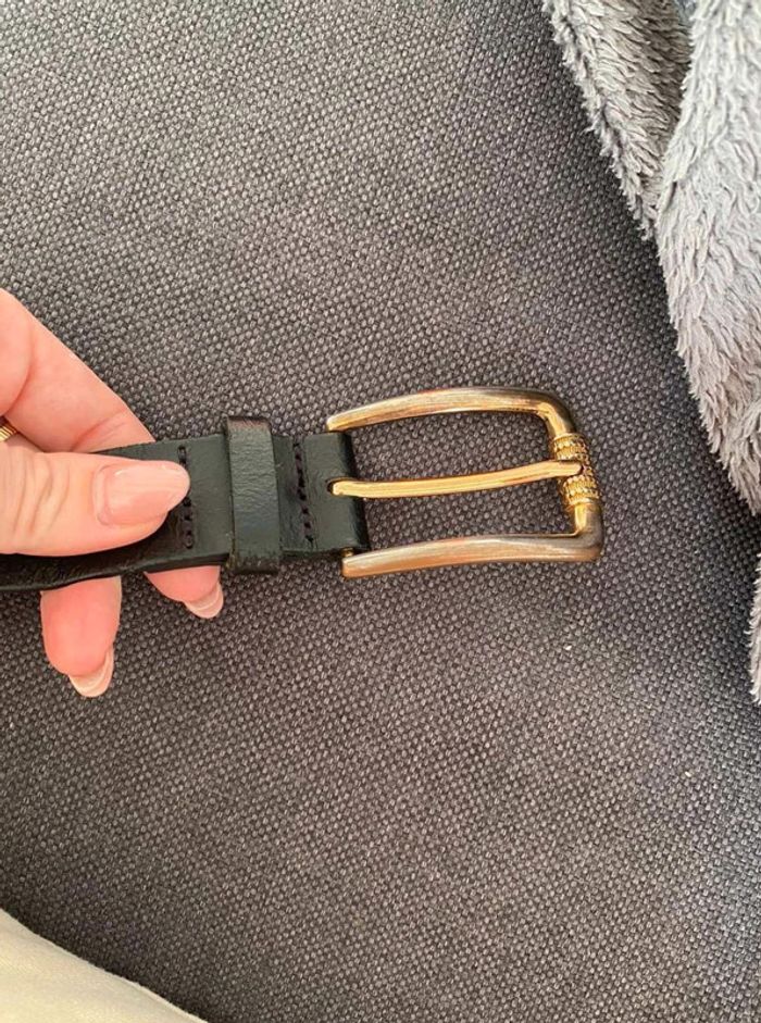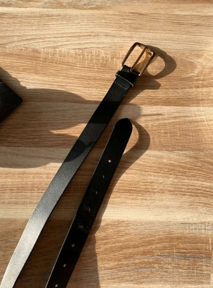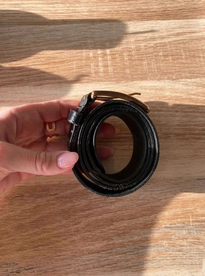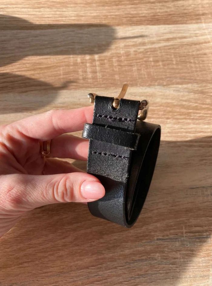 Ceinture Ceinture noir en cuir avec boucle carré doré Bon état (le cuir est en bon état) mais la couleur de la boucle part… ⚠️ voir photos Taille XS/S Marque ASOS & acheté 20€ sur asos 10€
