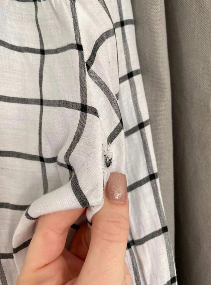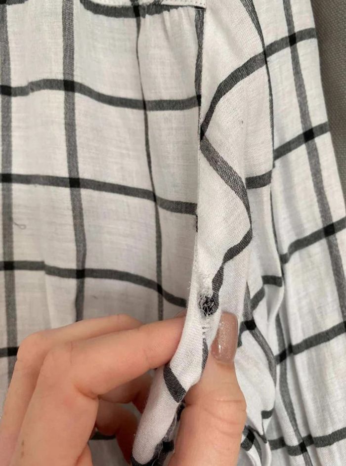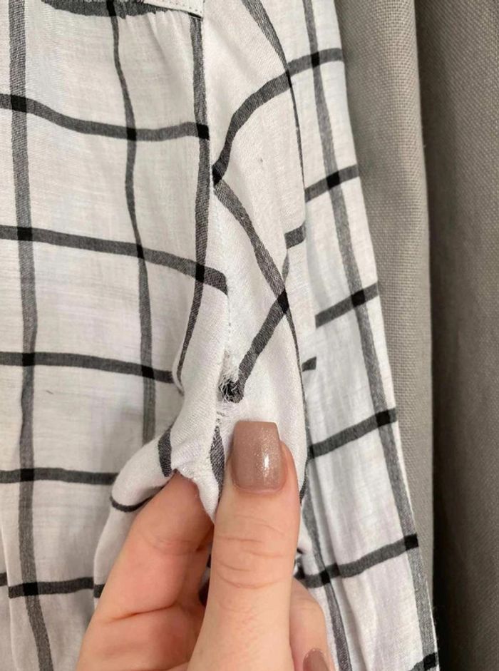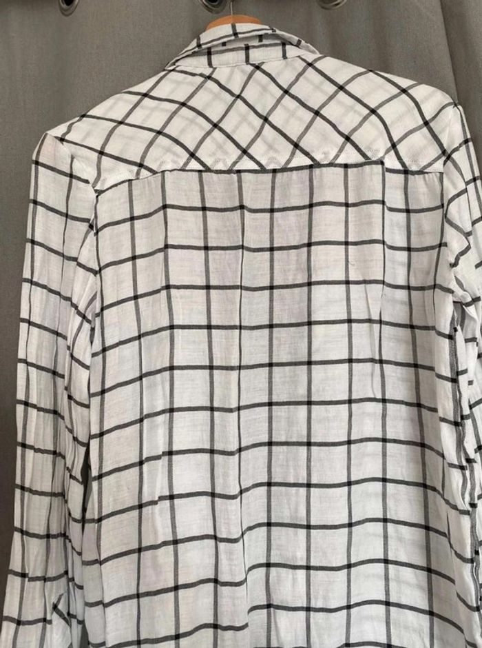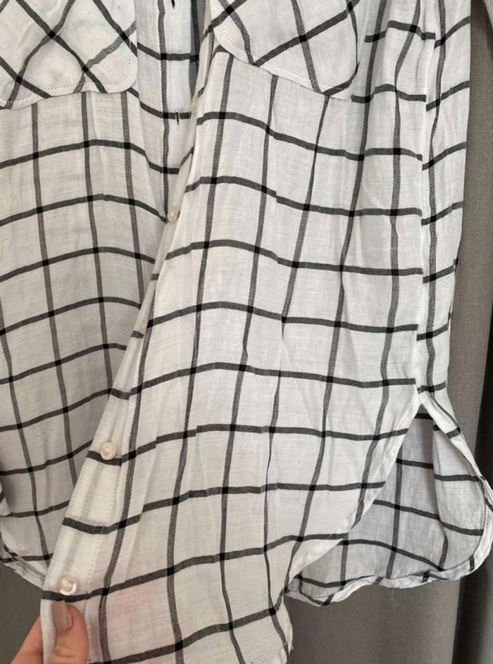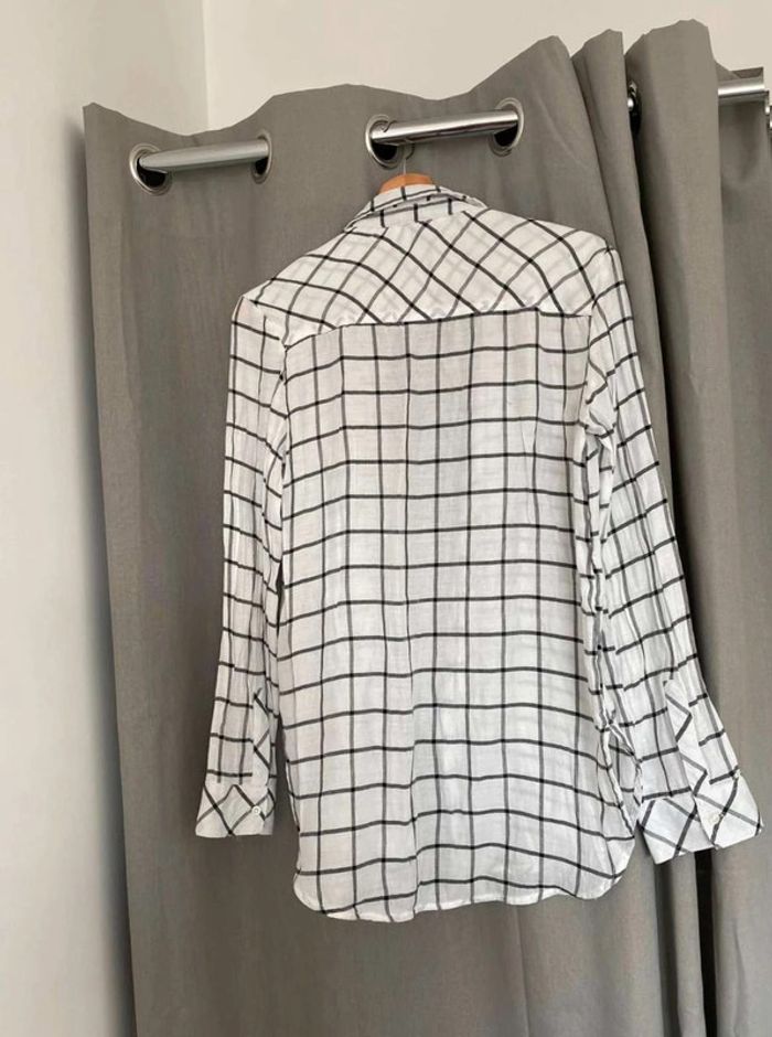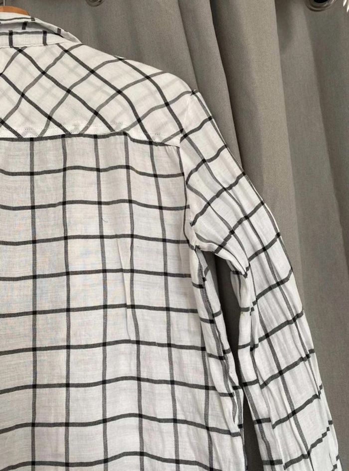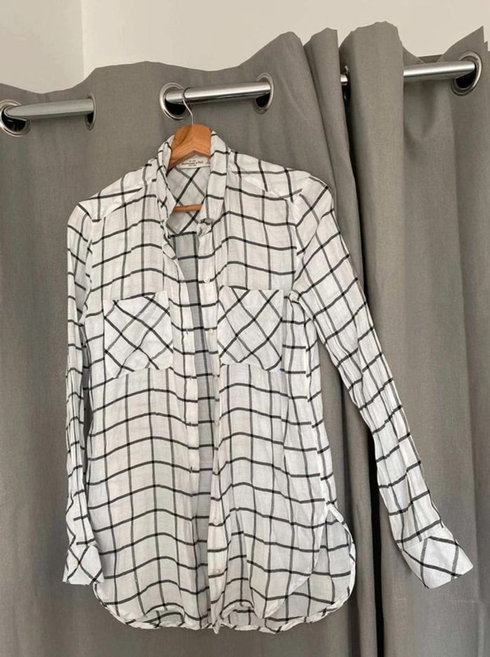 Chemise à carreaux Couleurs blanc gris et noir Deux poches sur le devant au niveau de la poitrine Matière plutôt fine Très bon état Sauf à l’arrière au niveau de l’aisselle droit ça se decout.. voir photos Marque Abercrombie Acheté 65€
