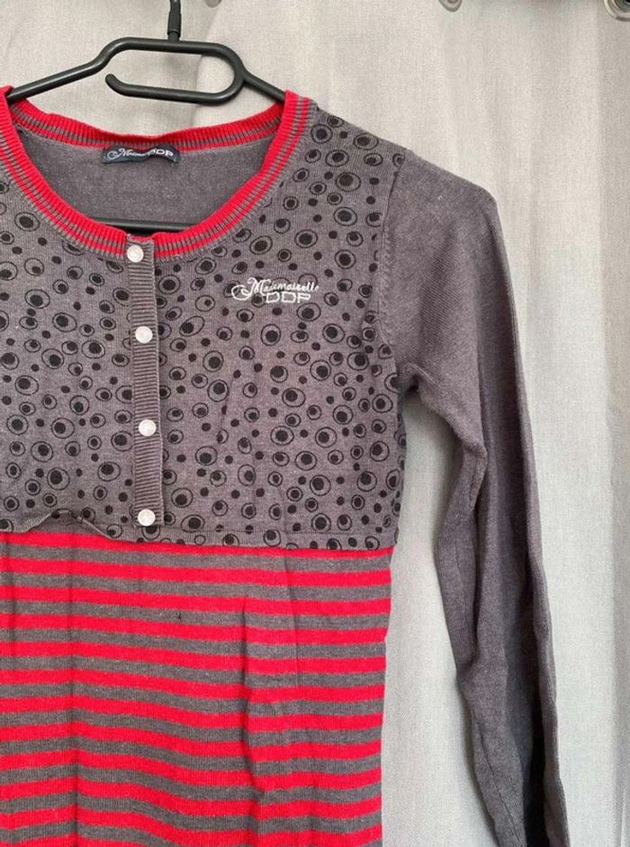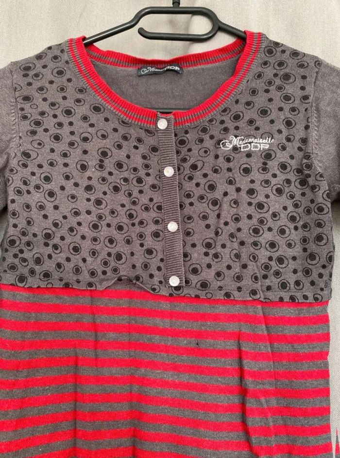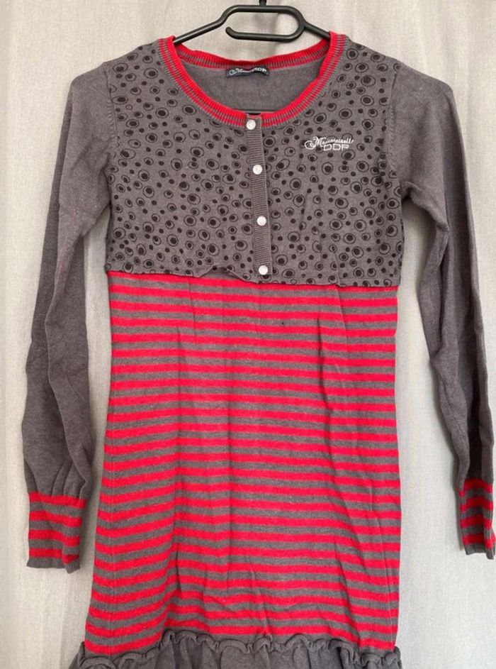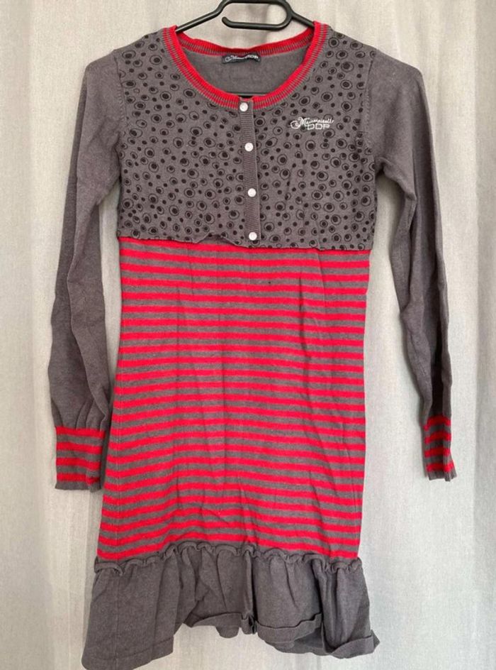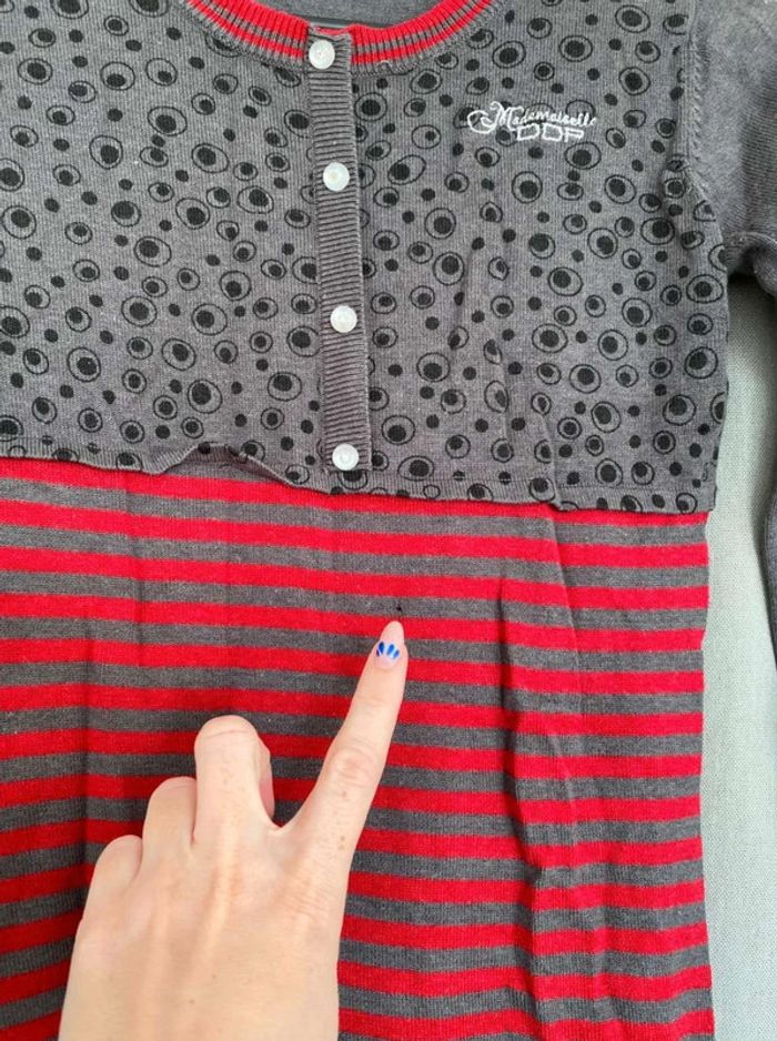 Robe pull Robe pull à motifs Modèle enfant Très bon état mais ⚠️ 2 petits trous (voir photos) Boutons sur le devant - à volants en bas de la robe Robe grise, noir et rouge Taille 14 ans Marque Mademoiselle DDP 33% coton 10€
