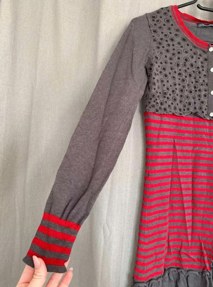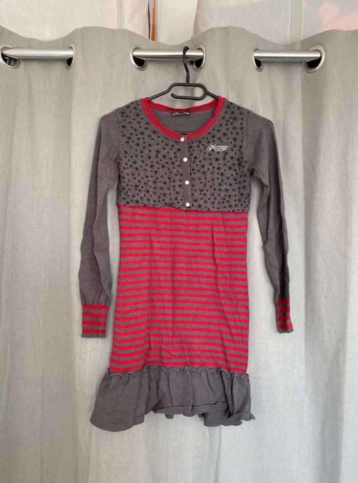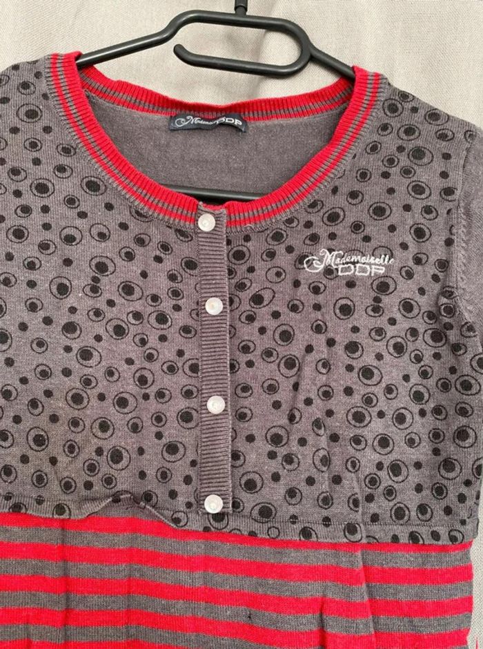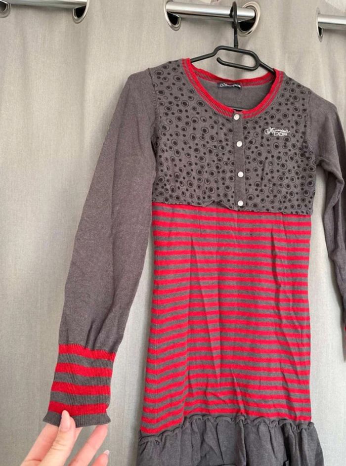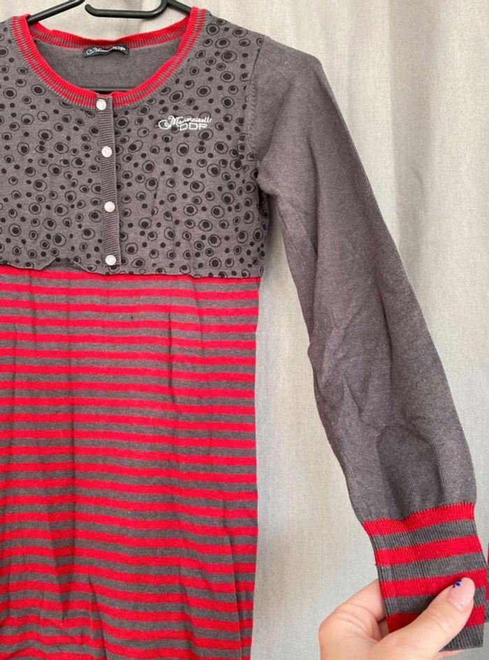 Robe pull Robe pull à motifs Modèle enfant Très bon état mais ⚠️ 2 petits trous (voir photos) Boutons sur le devant - à volants en bas de la robe Robe grise, noir et rouge Taille 14 ans Marque Mademoiselle DDP 33% coton 10€