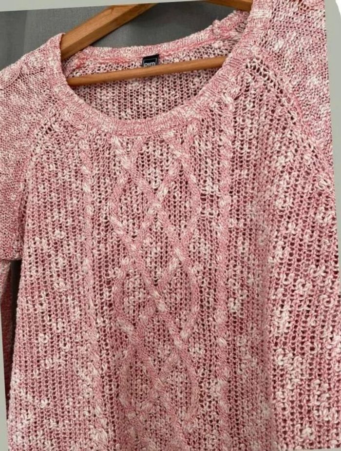 Pull rose et blanc Pull femme Couleur rose et blanc torsadé devant Pull fin- Marque Pimkie Très bon état