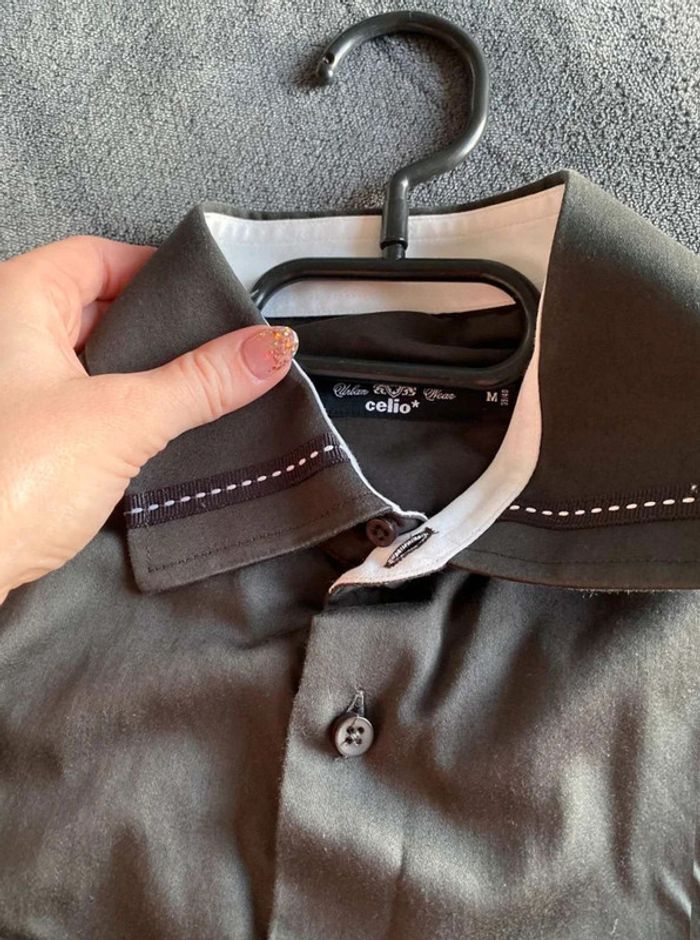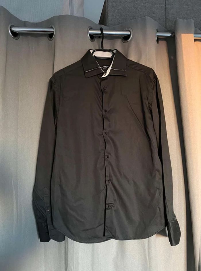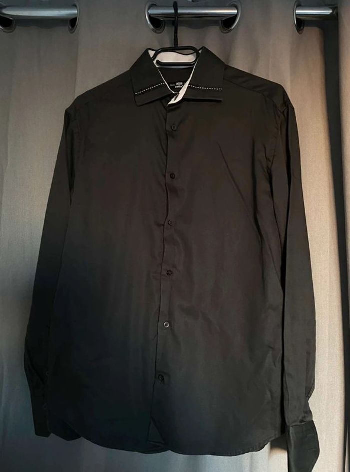 Chemise noire Chemise noire Article neuf sans étiquette Marque Celio, taille M Noire simple classique Détail sur le col & boutons sur les manches (voir photos) 100% coton 20€