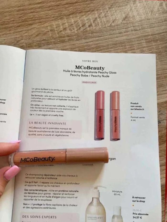 Huile à lèvres hydratante Peachy Gloss Teinte Peachy nude Format vente 4ml Gloss brillant Produit neuf Marque McoBeauty