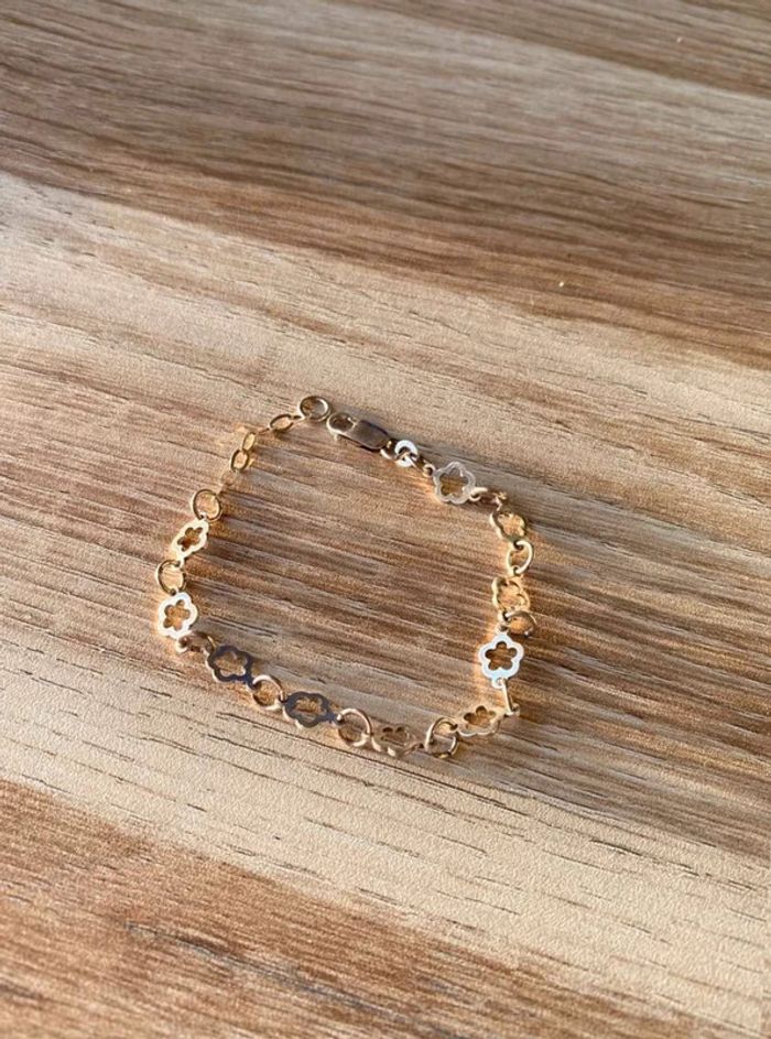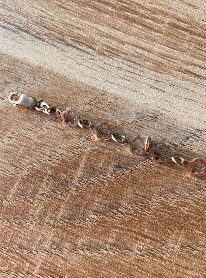 Bracelet argent Bon état Motif petites fleurs Bijou avec le poinçon