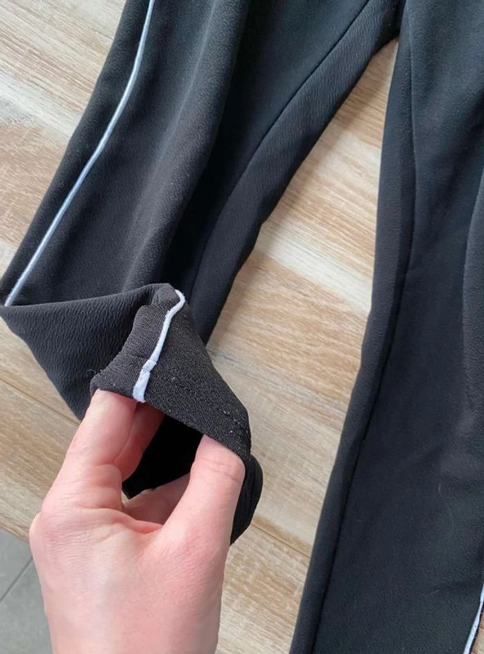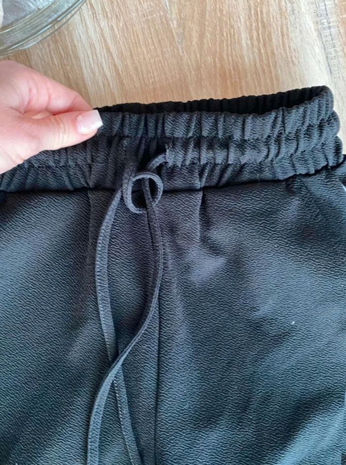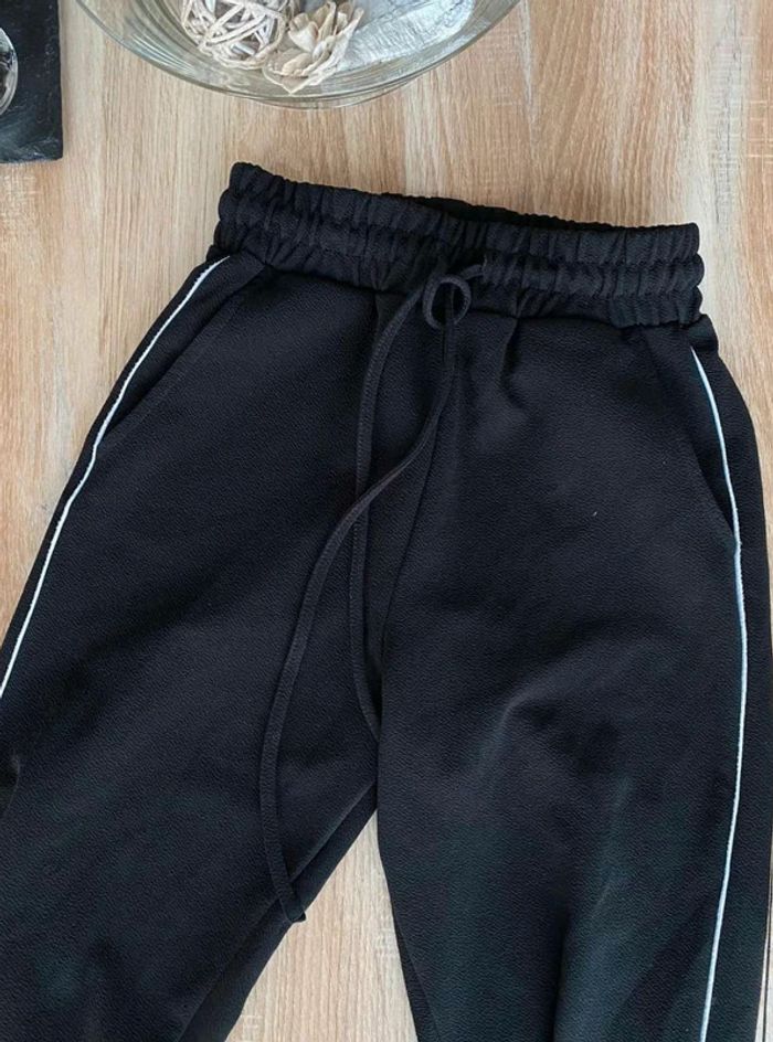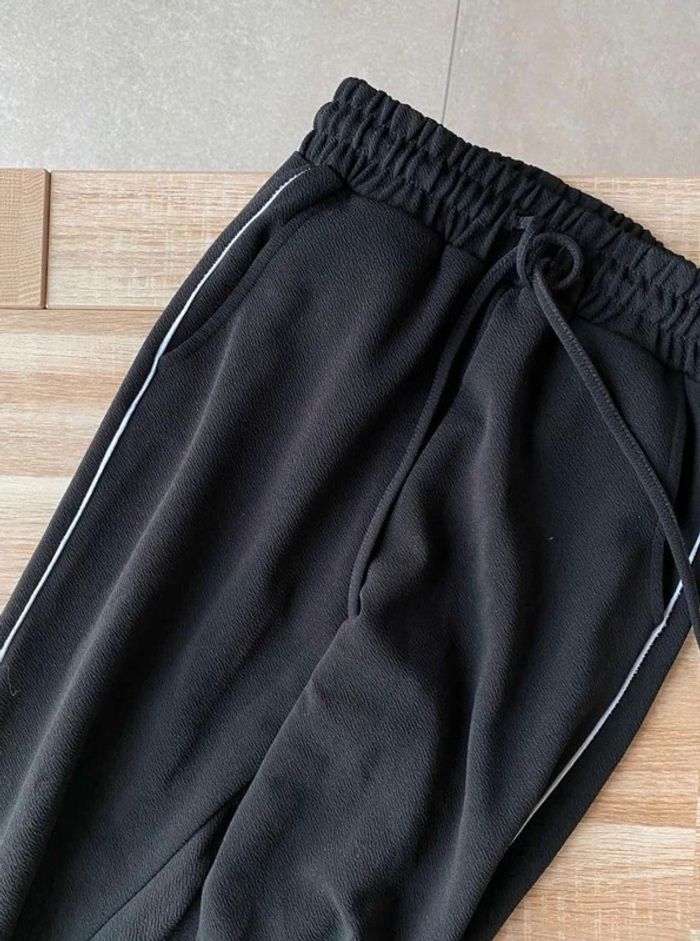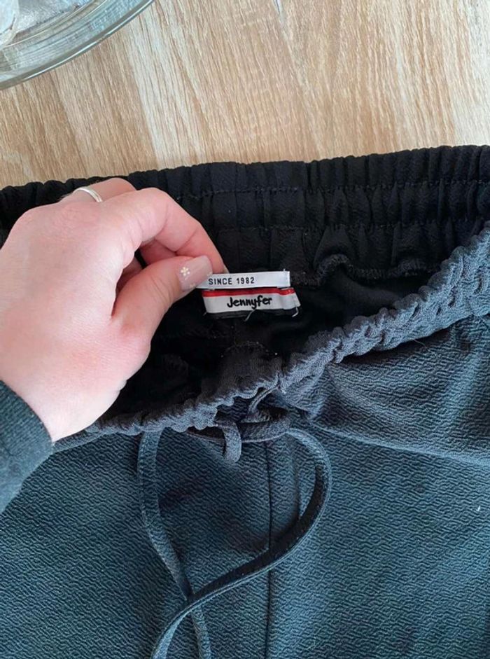 Pantalon Pantalon plutôt large / noir et bandes fines blanches sur les côtés 2 poches devant et 2 fausses poches derrière Se noue et se resserre à la taille/ élastique à la taille Matière plutôt légère et fluide Très bon état Taille XS Marque Jennyfer 15€