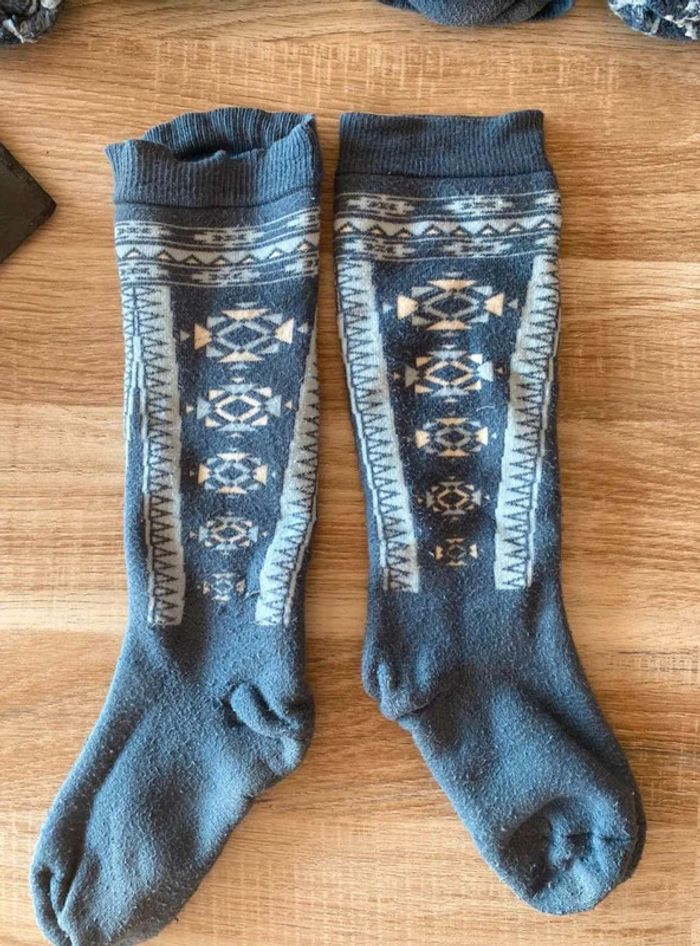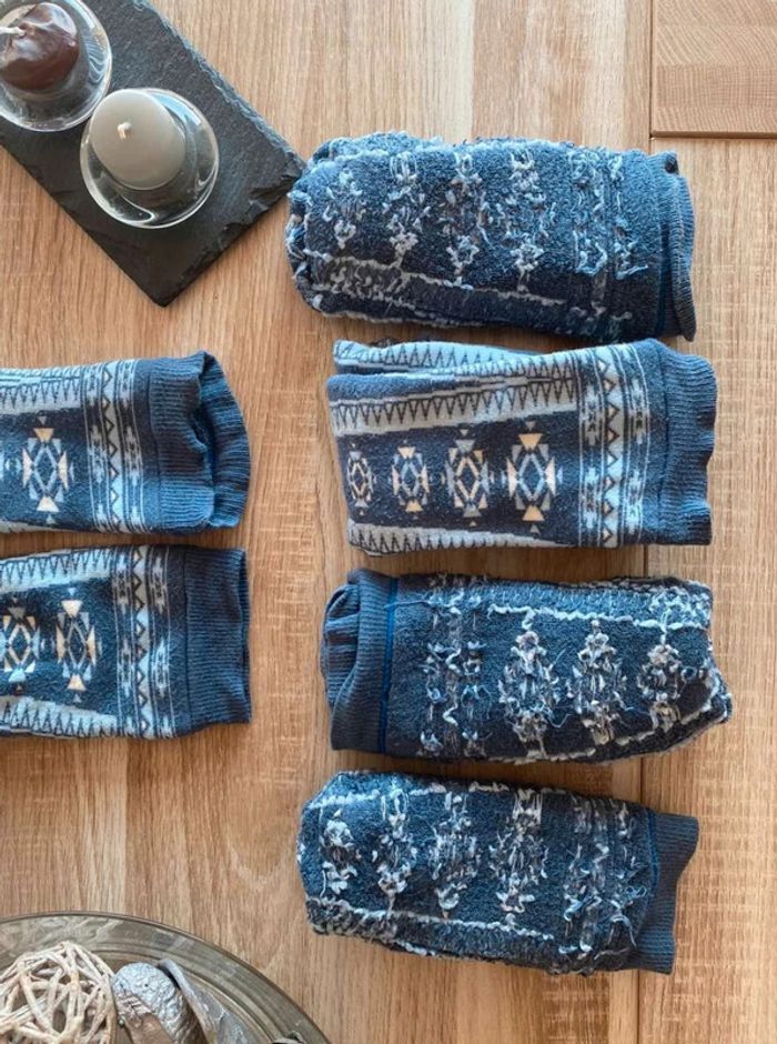 Lot 5 paires chaussettes 🧦 Lot 5 paires chaussettes de ski Taille Unique mais taille plutôt pour les enfants Marque Wedze ou Quechua (il n’y a plus les étiquettes) Bon état dans l’ensemble (quelques chaussettes sont un peu détendus au niveau de la cheville) Bleu / bleu ciel et blanc Chaussettes à motifs Une paire : 2€ - Lot de 5 à 8€ 8€