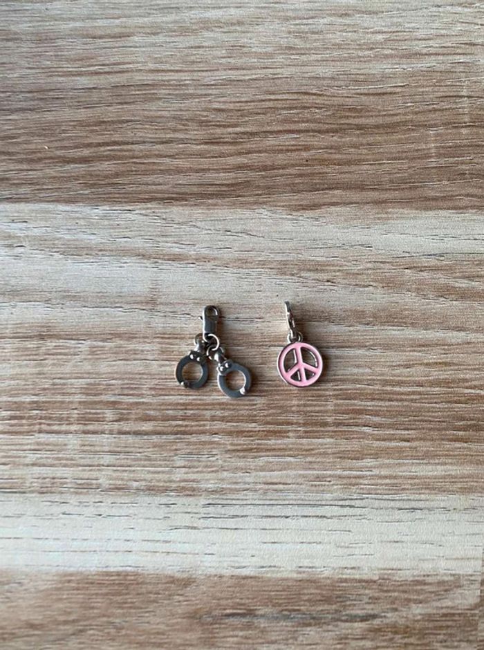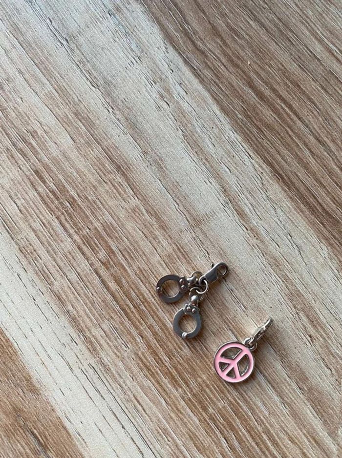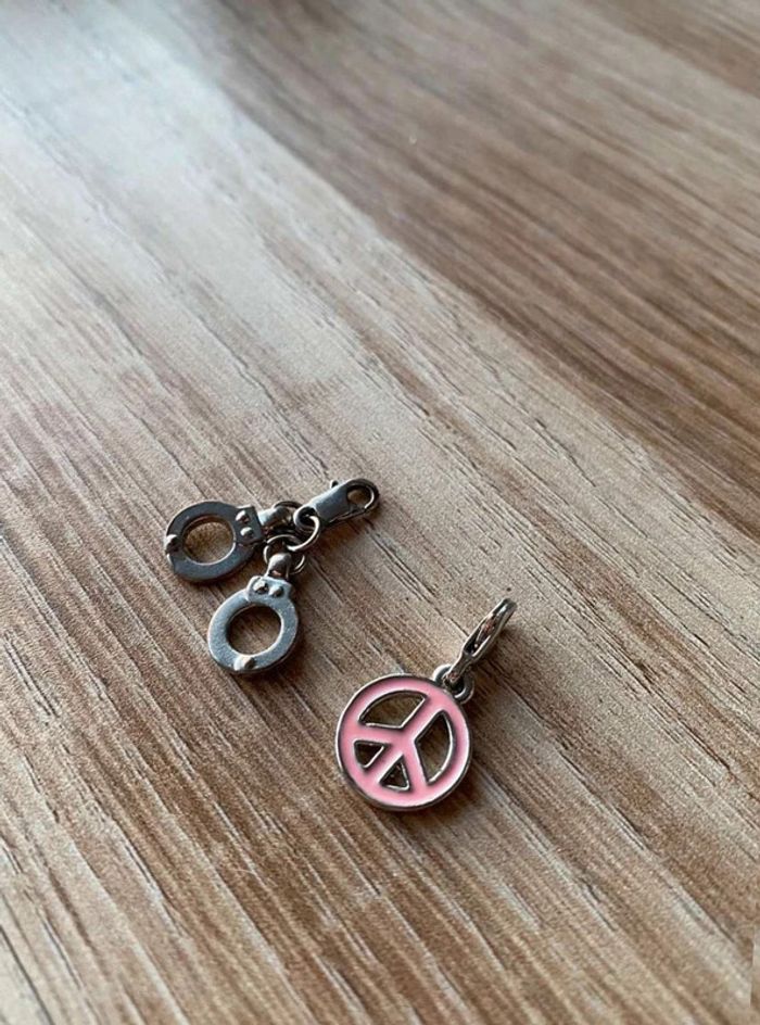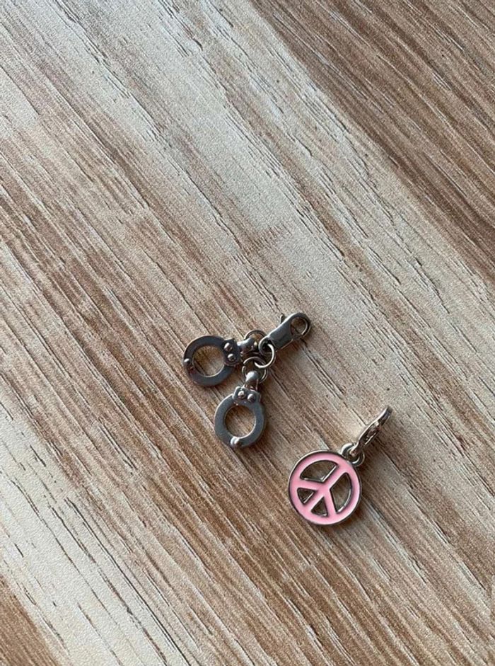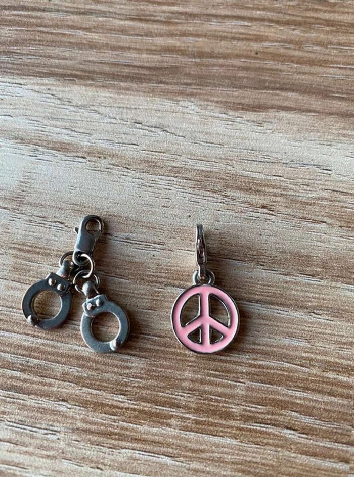 Pendentifs bracelets x2 Modèle peace& love and rose + MODÈLE menottes Bon état Couleur argent