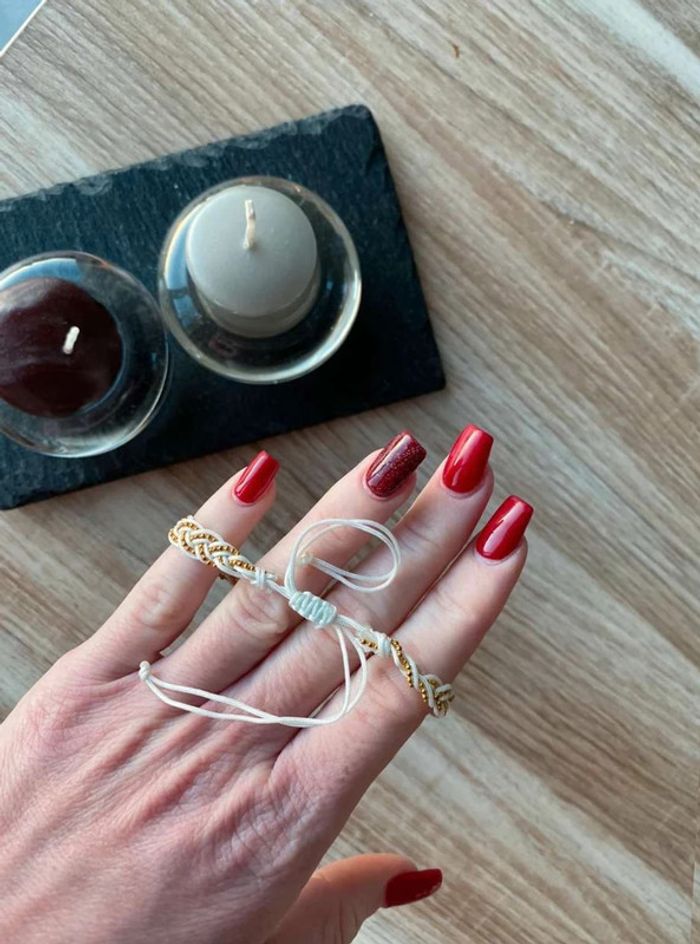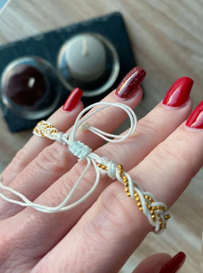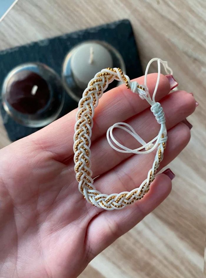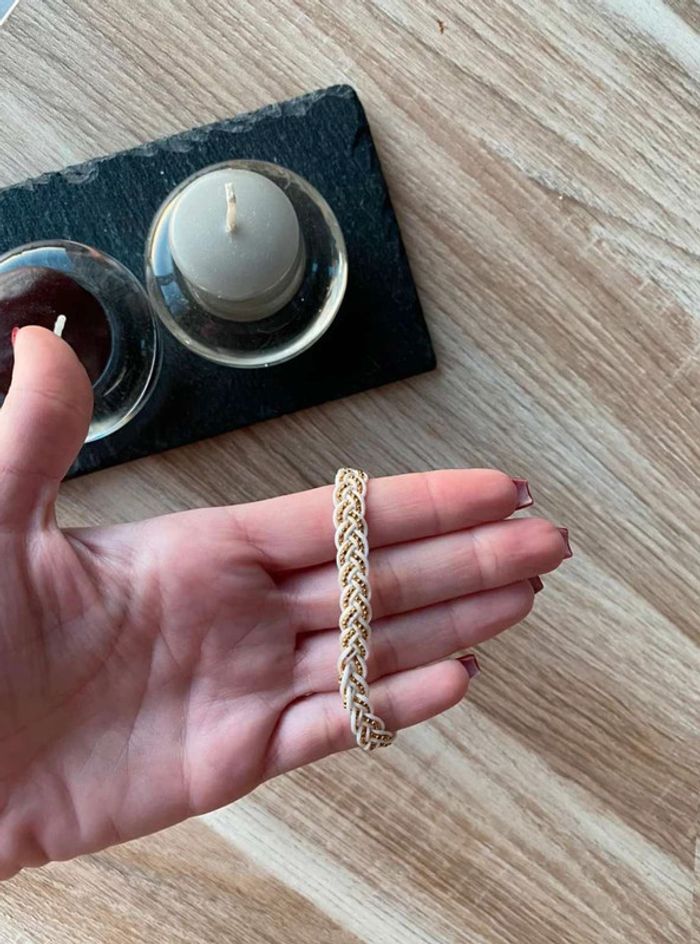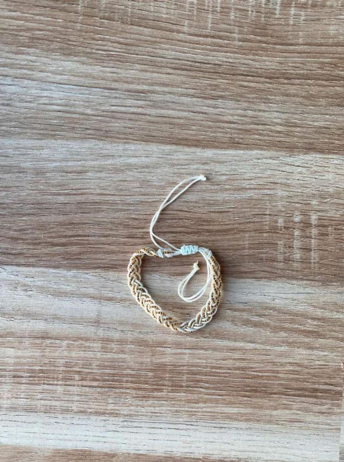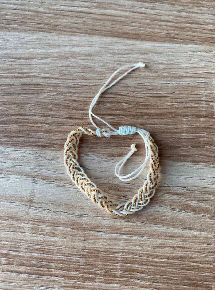 Bracelet tissu tressé, blanc & doré Perle doré Jamais porté Acheté dans une petite boutique de bijoux à Grimaud
