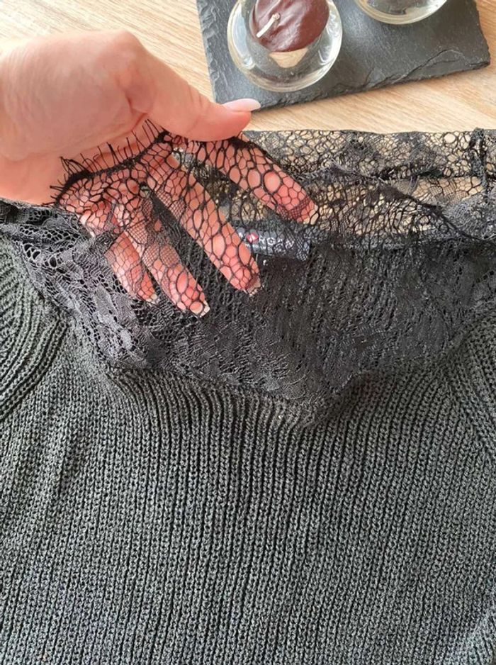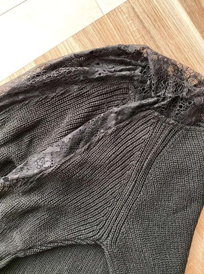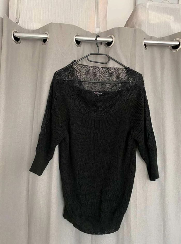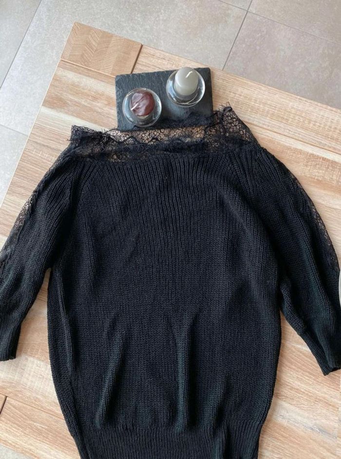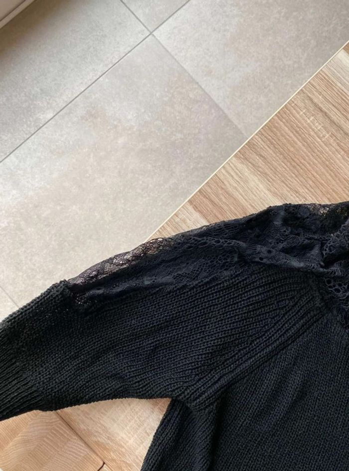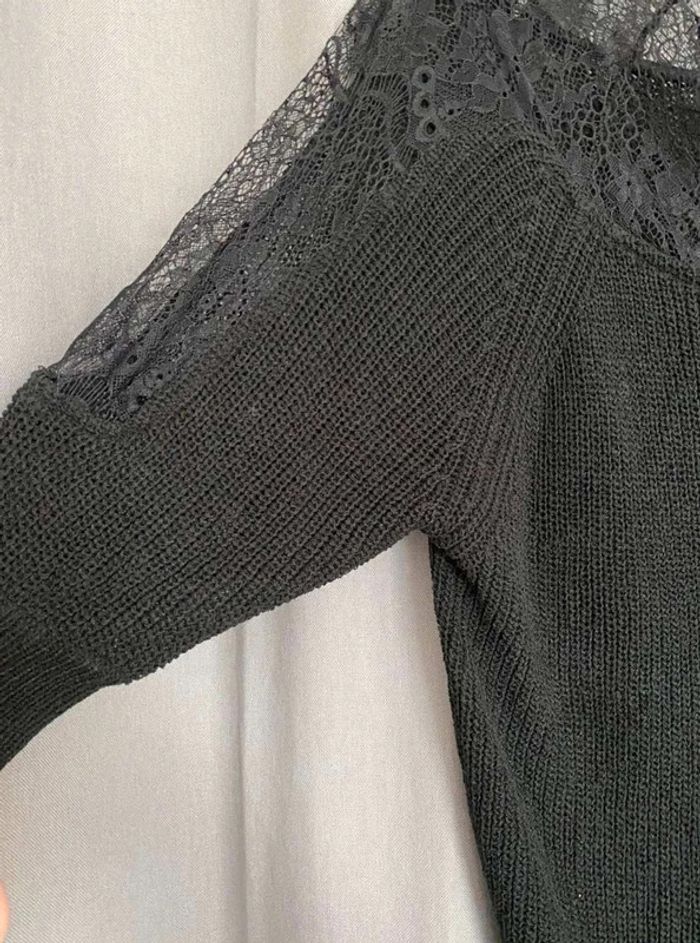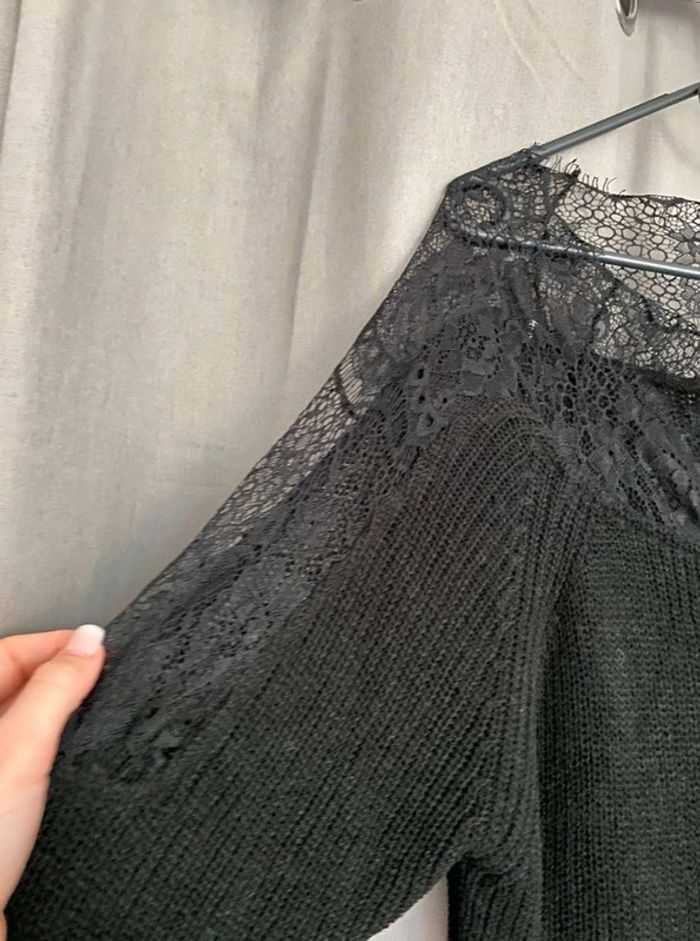 Pull noir Pull noir à dentelle Dentelle sur le col (devant + derrière) Dentelle sur les manches - manches plus amples (style chauve souris) Manches qui arrivent au niveau du coude Maille plutôt fini Pull uni noir avec beaucoup de dentelles Très bon état ⚠️ étiquette coupée à l’intérieur Taille S Marque Morgan 15€